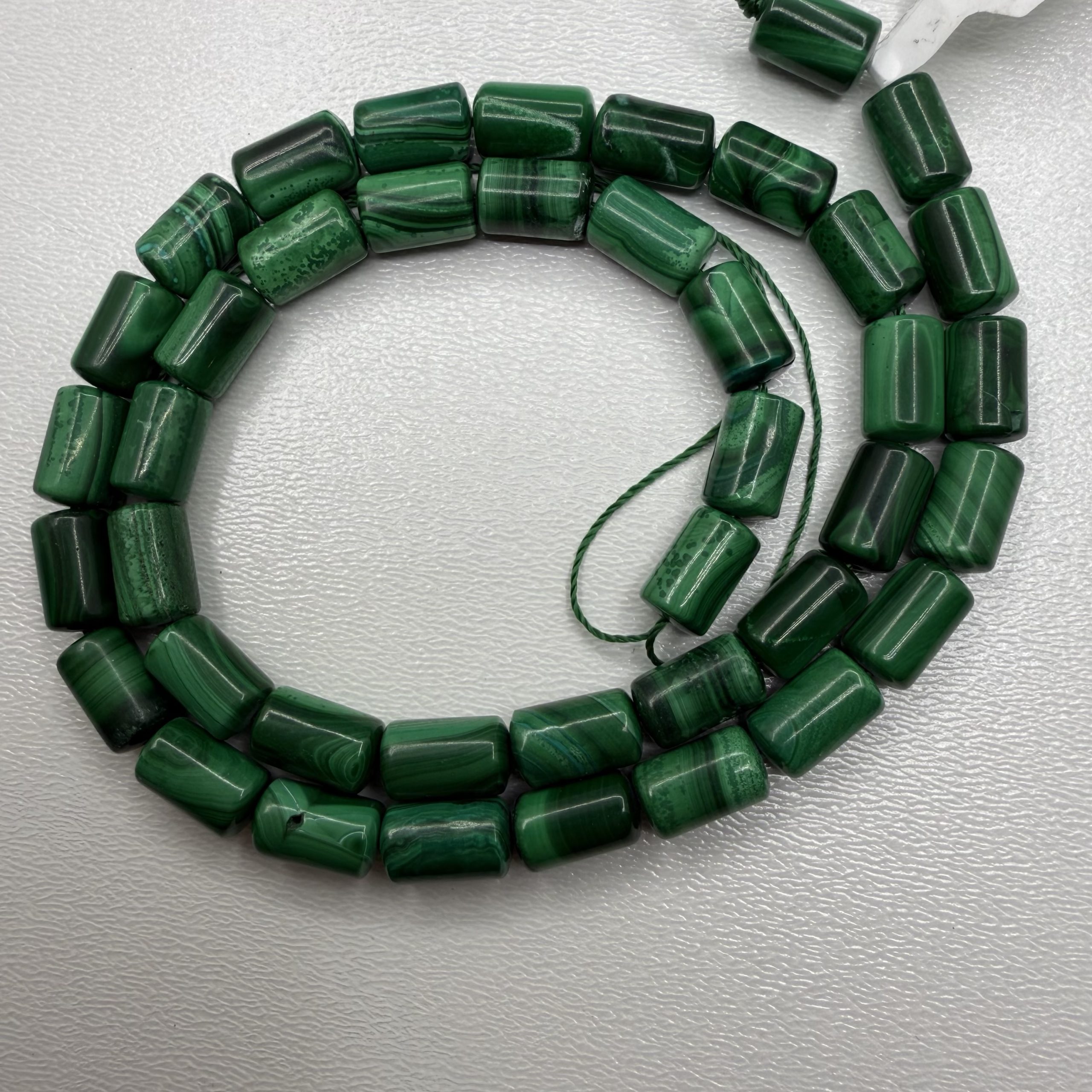 Намистини Малахіт, форма циліндр . Розмір 6/10 мм, 40 см . Ціна за нитку кількість