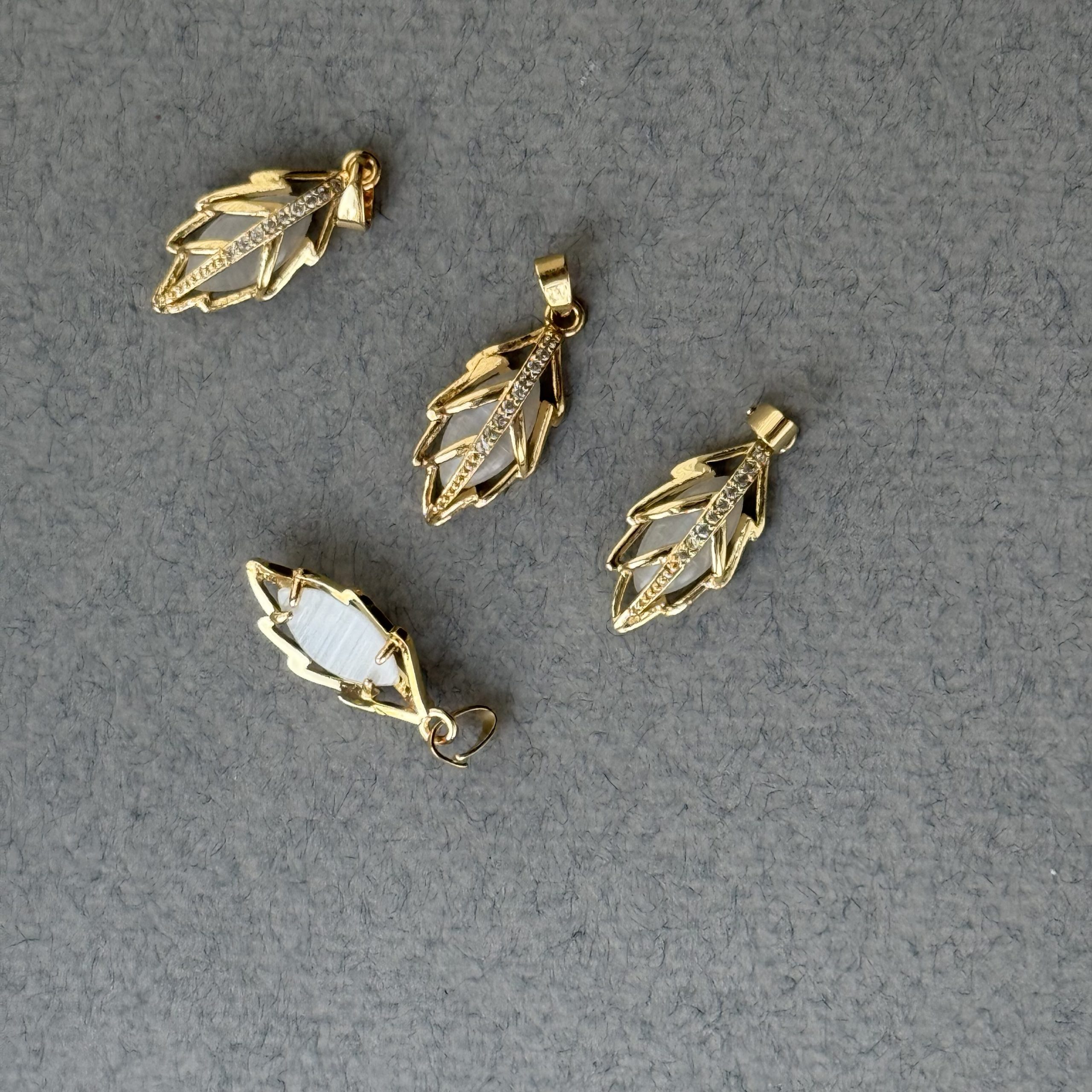 Підвіс Листок, Кошаче око,позолота по латуні. . Розмір 21/10 мм . Ціна за шт кількість