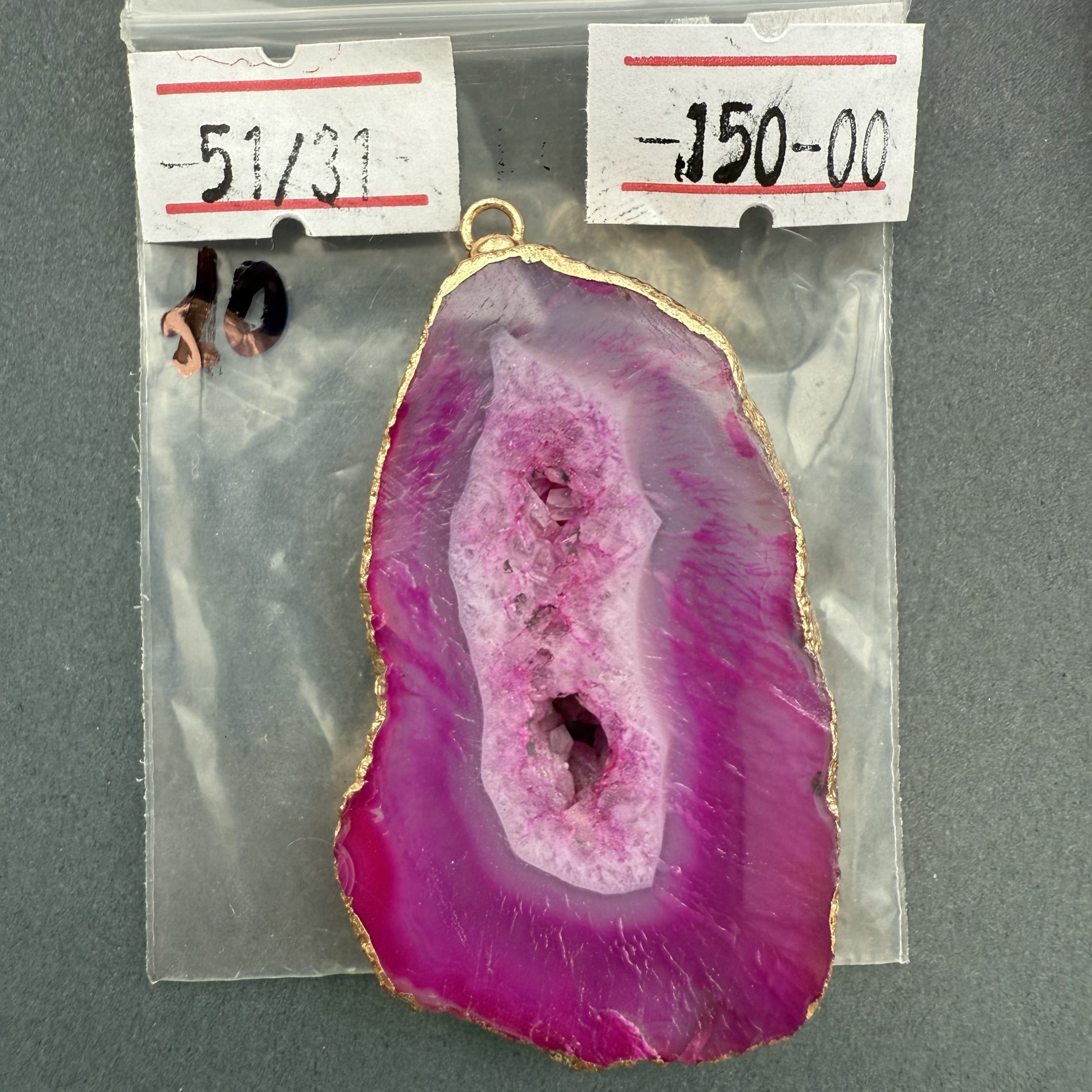 Друза 10 зріз агат, розмір 51/31 мм, 1 петля оправа золото, відтінок рожевий