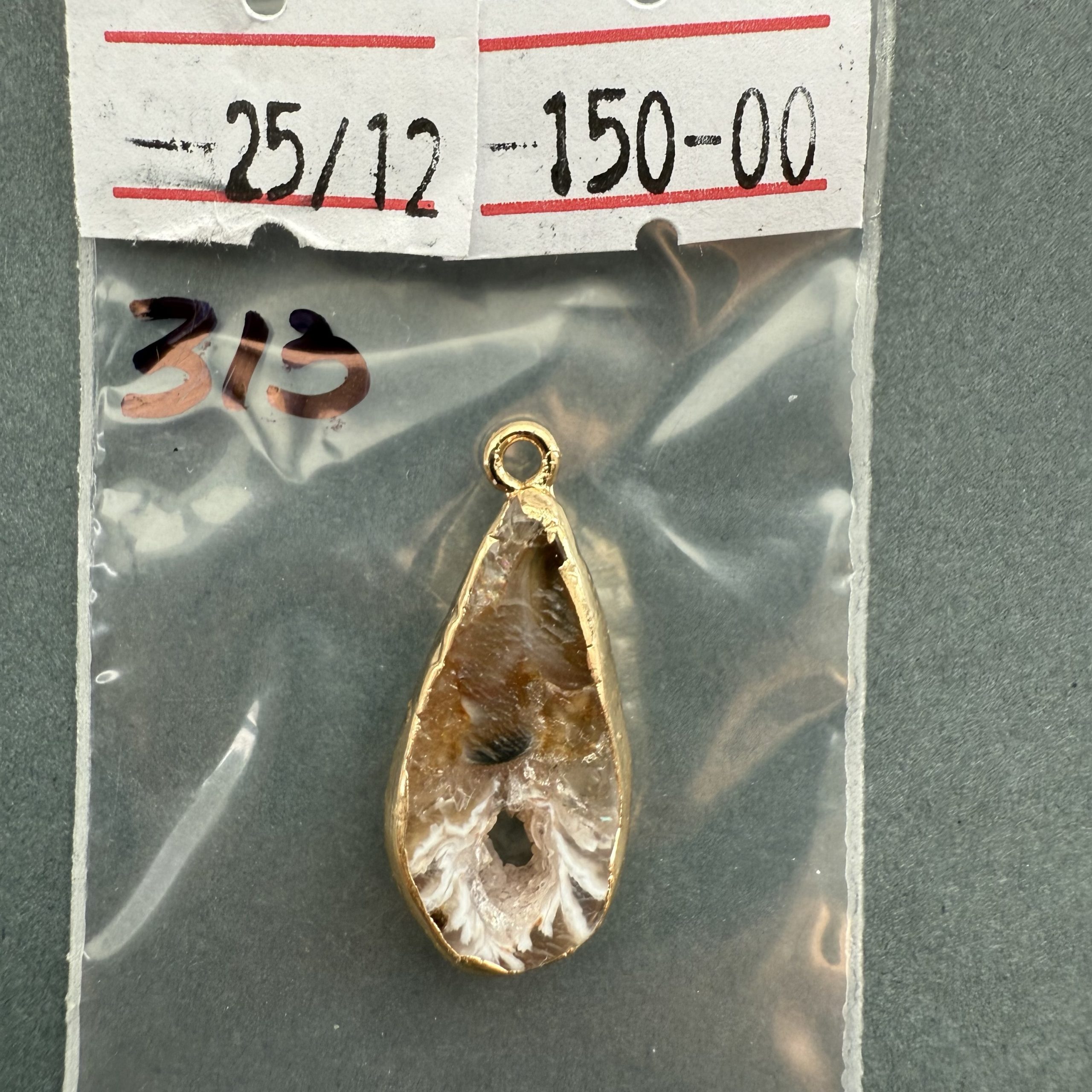 Друза 313 зріз агат, розмір 25/12 мм, 1 петля оправа золото, відтінок коричневий