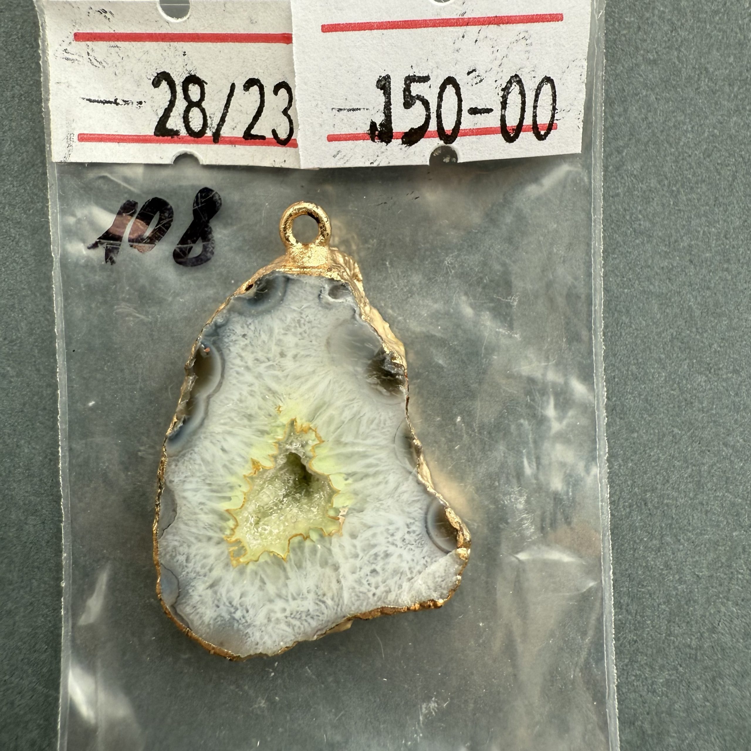 Друза 313 зріз агат, розмір 25/12 мм, 1 петля оправа золото, відтінок коричневий