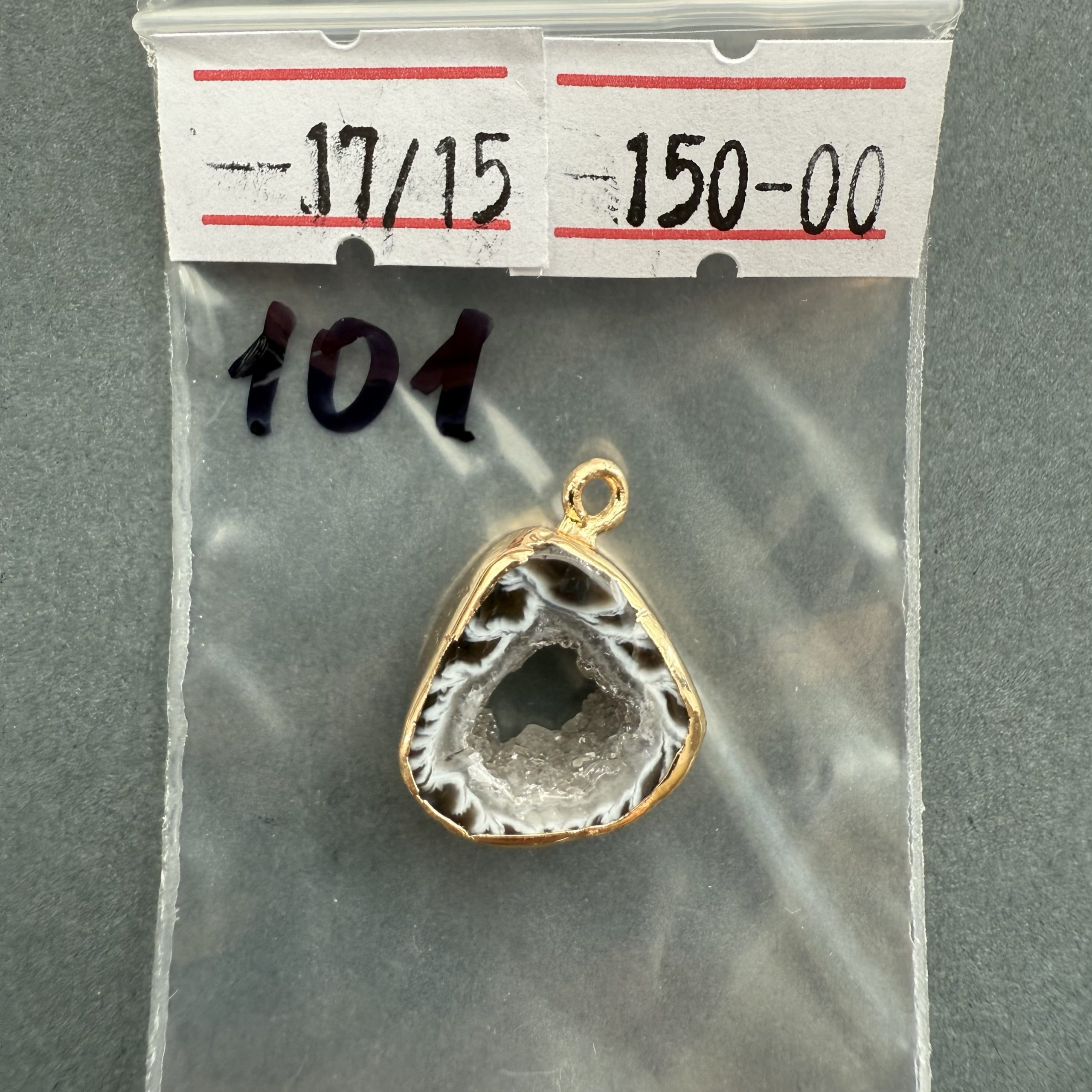 Друза 101 зріз агат, розмір 25/17 мм, 1 петля, відтінок чорний, оправа золото кількість