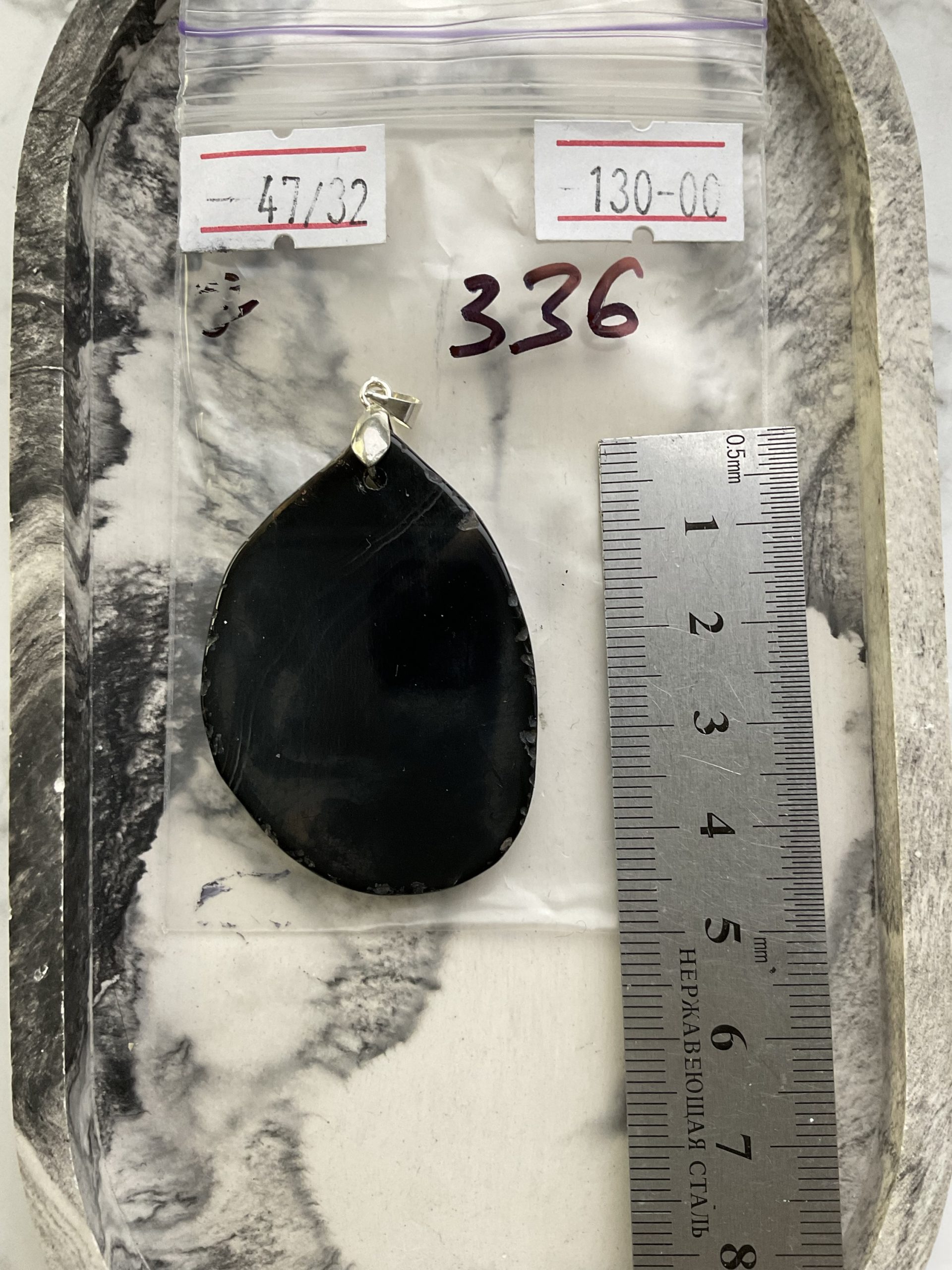 Друза 336 зріз агат, розмір 47/32 мм, 1 петля, відтінок чорний, підвіска срібло.