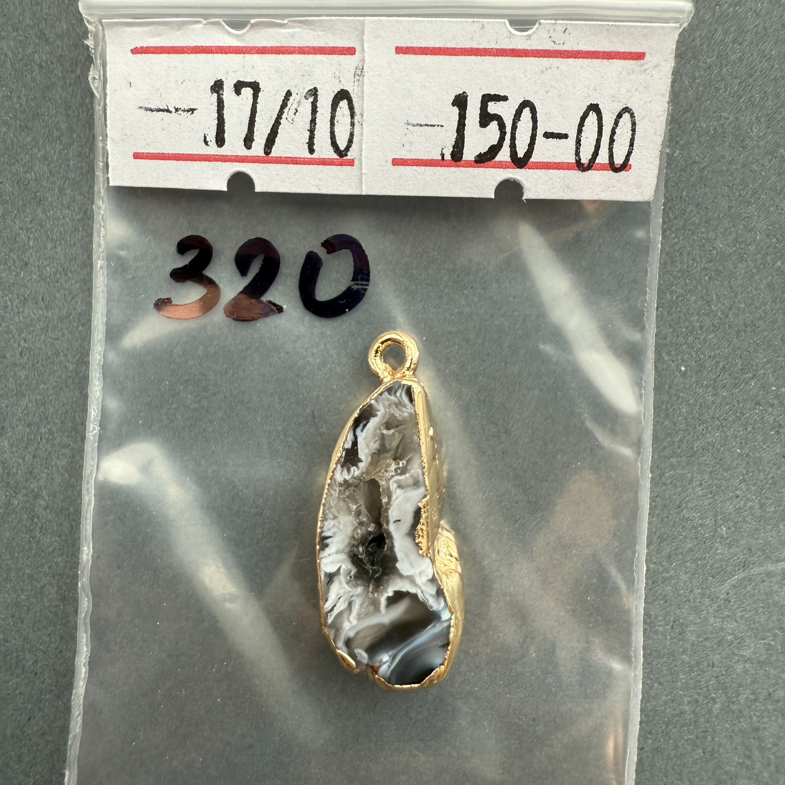 Друза 100 зріз агат, розмір 25/15 мм, 1 петля, відтінок сірий, оплата золото