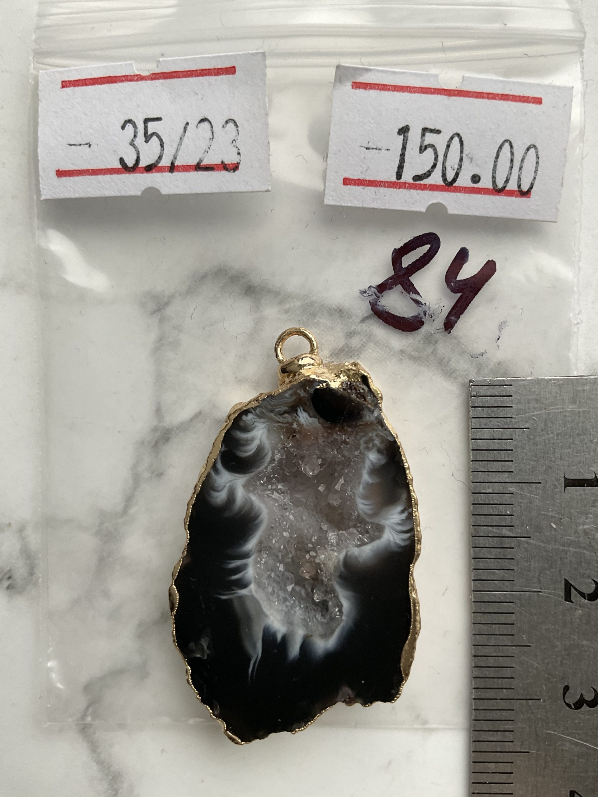 Друза 84 зріз агат, розмір 35/23 мм, 1 петля, відтінок чорний, оправа золото. кількість