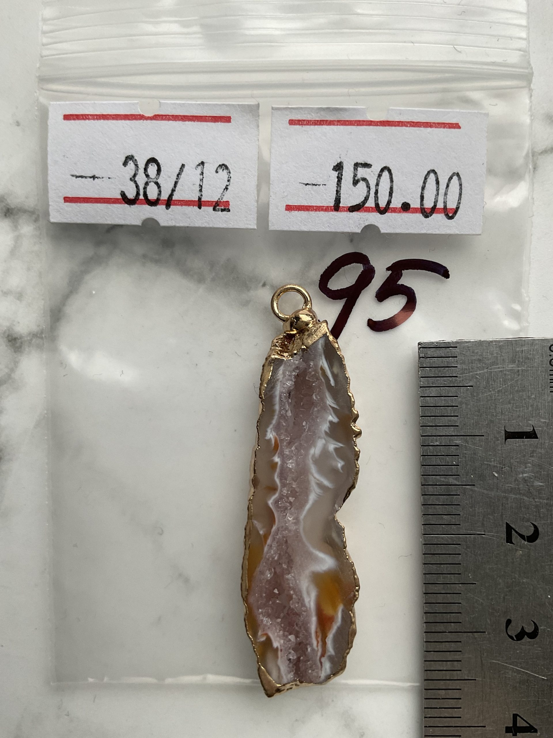 Друза 95 зріз агат, розмір 38/12 мм, 1 петля, відтінок коричневий,оправа золота. кількість