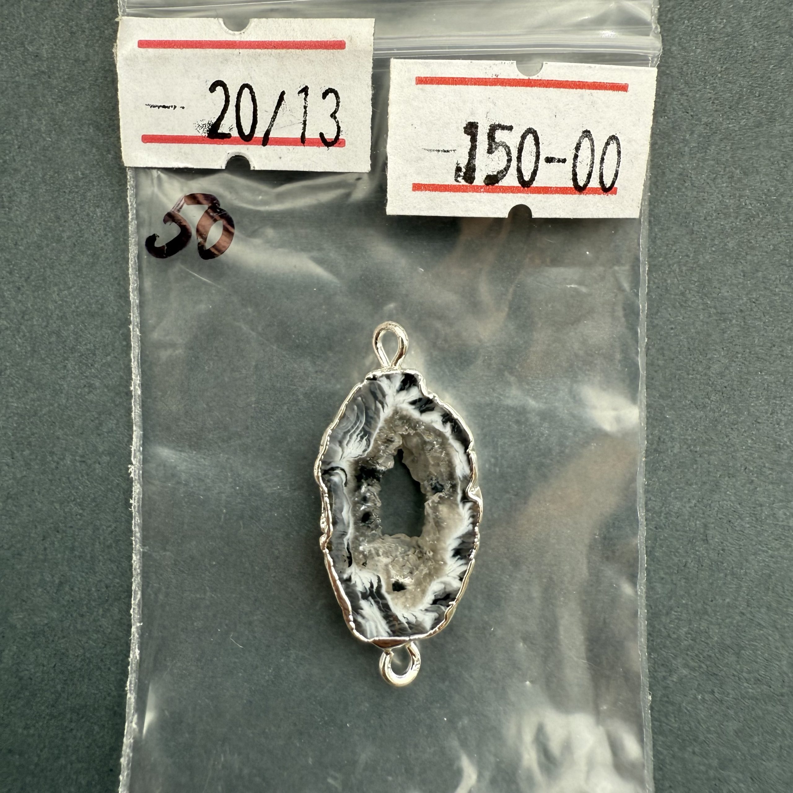 Друза 50 зріз агат , розмір 20/13 мм, 2 петлі, відтінок чорний, оправа срібло кількість
