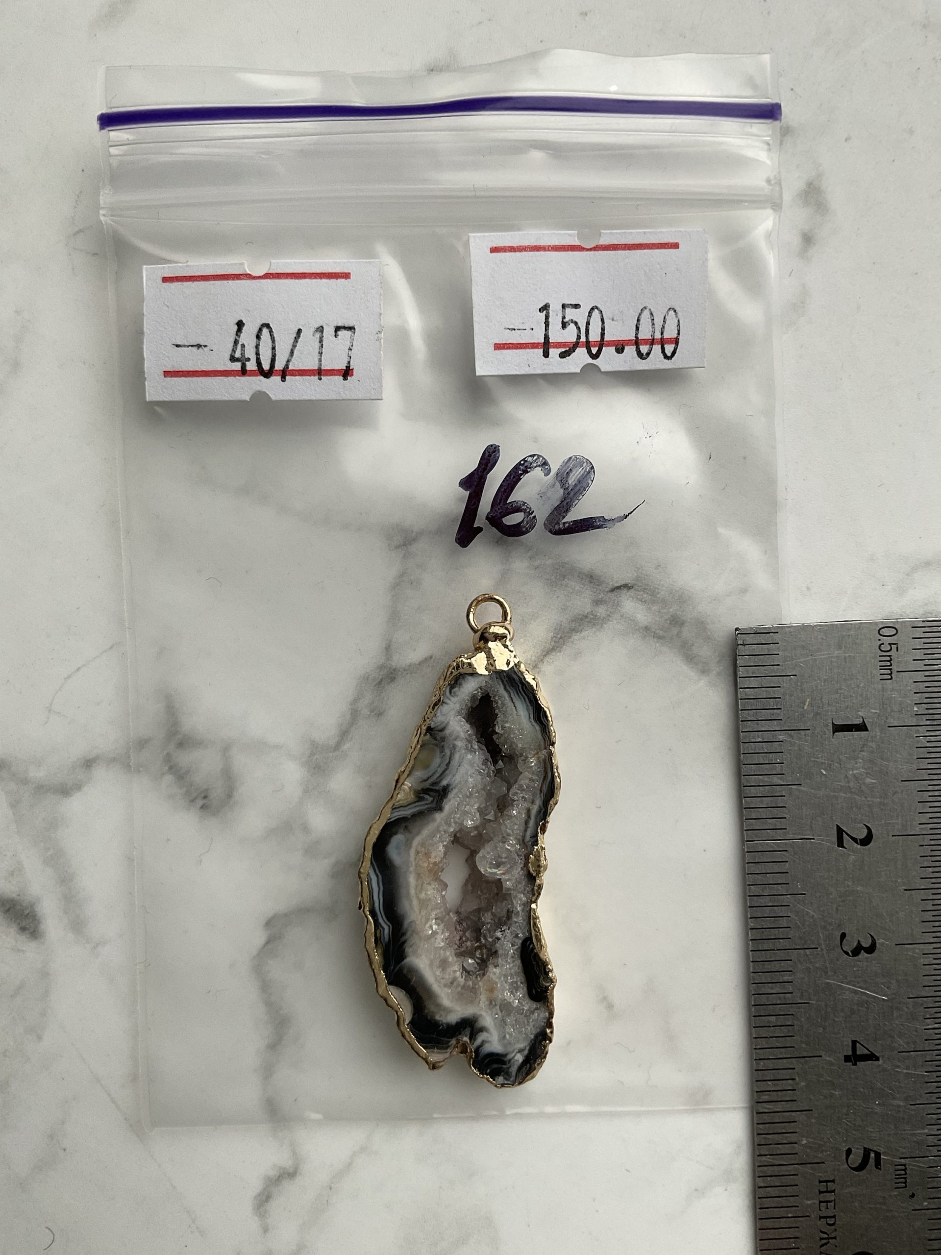 Друза 162 зріз агат, розмір 40/17 мм, 1 петля, відтінок чорний, оправа золото кількість