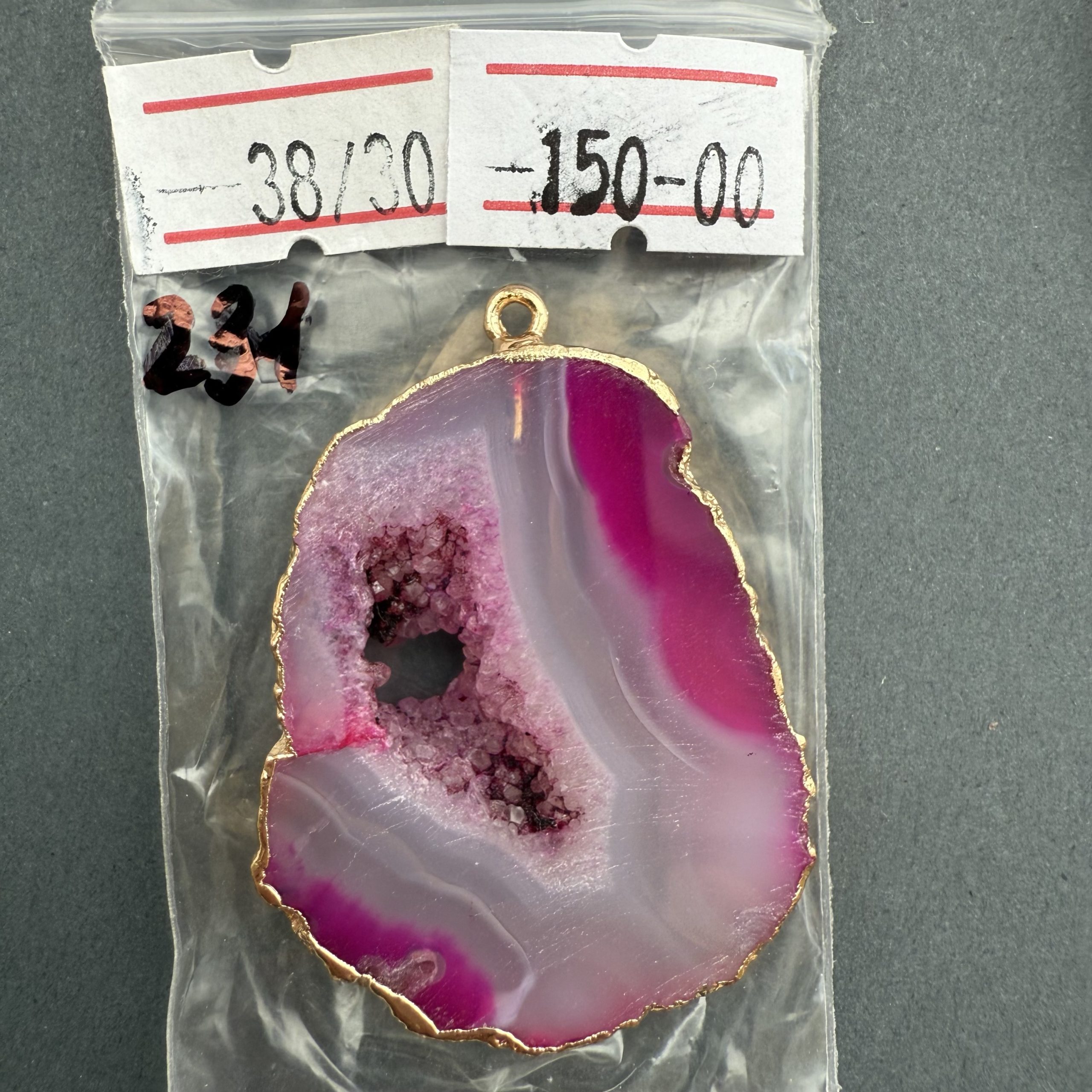 Друза 239 зріз агат, розмір 65/35 мм, 1 петля оправа золото, відтінок рожевий
