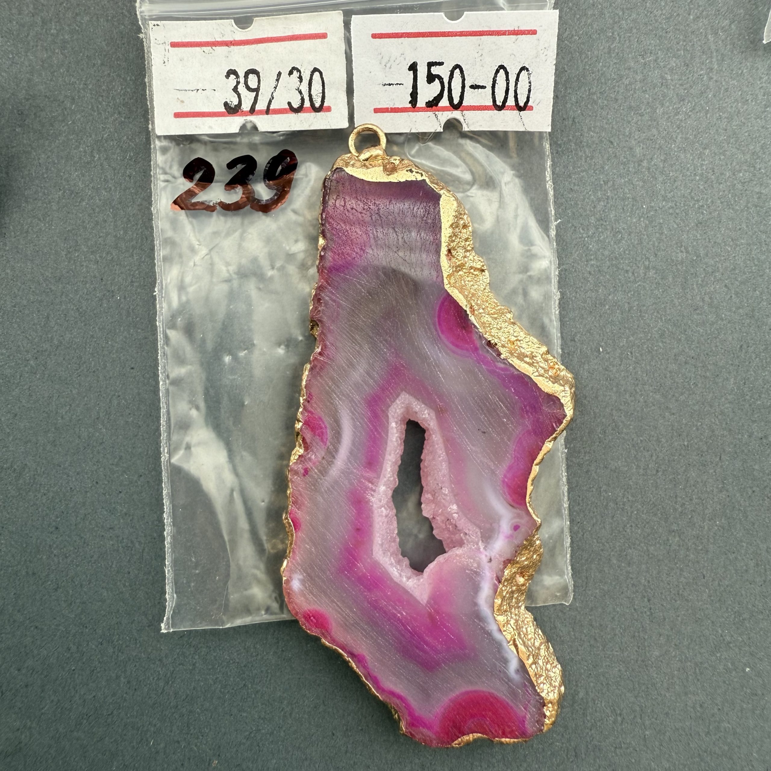 Друза 239 зріз агат, розмір 65/35 мм, 1 петля оправа золото, відтінок рожевий кількість