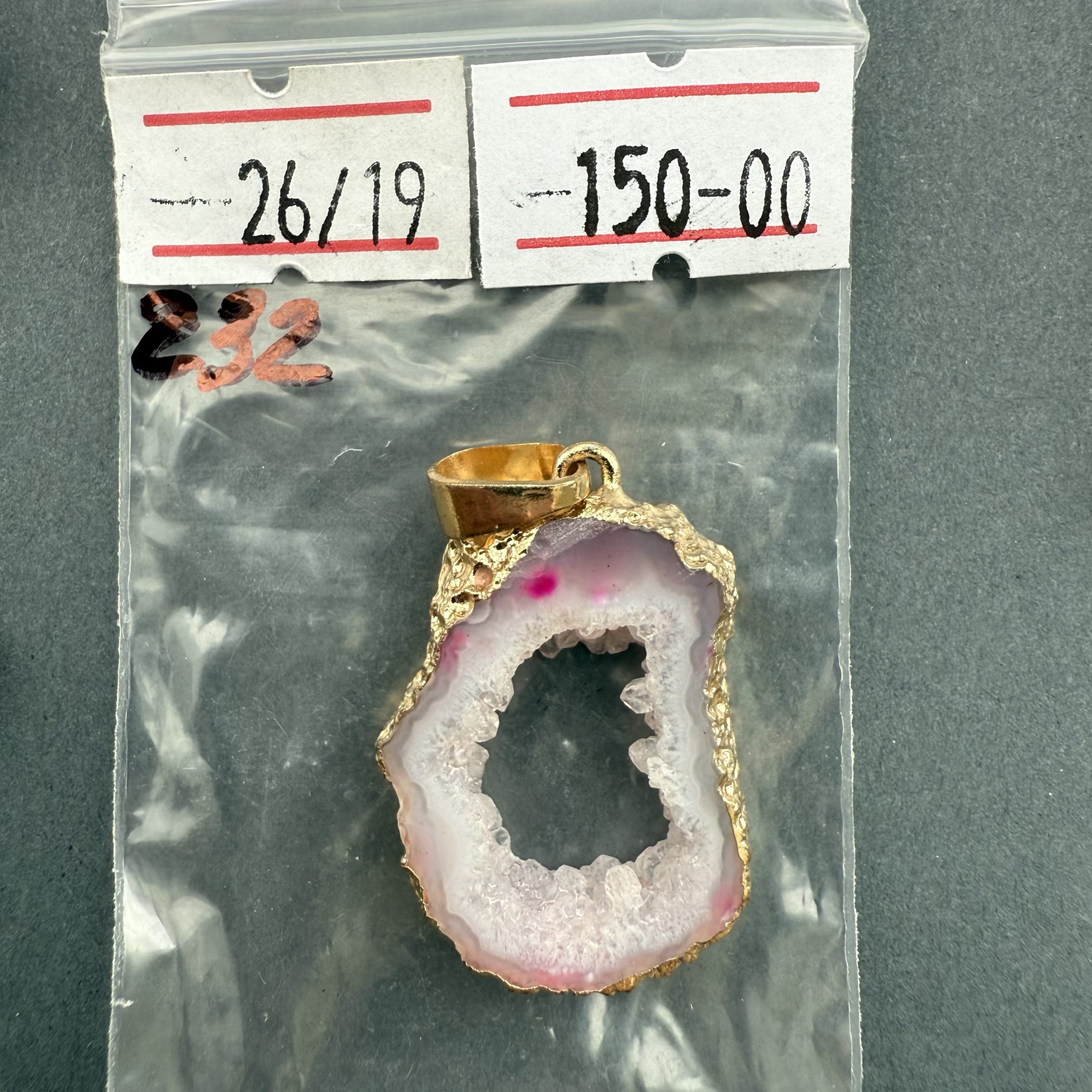 Друза 239 зріз агат, розмір 65/35 мм, 1 петля оправа золото, відтінок рожевий