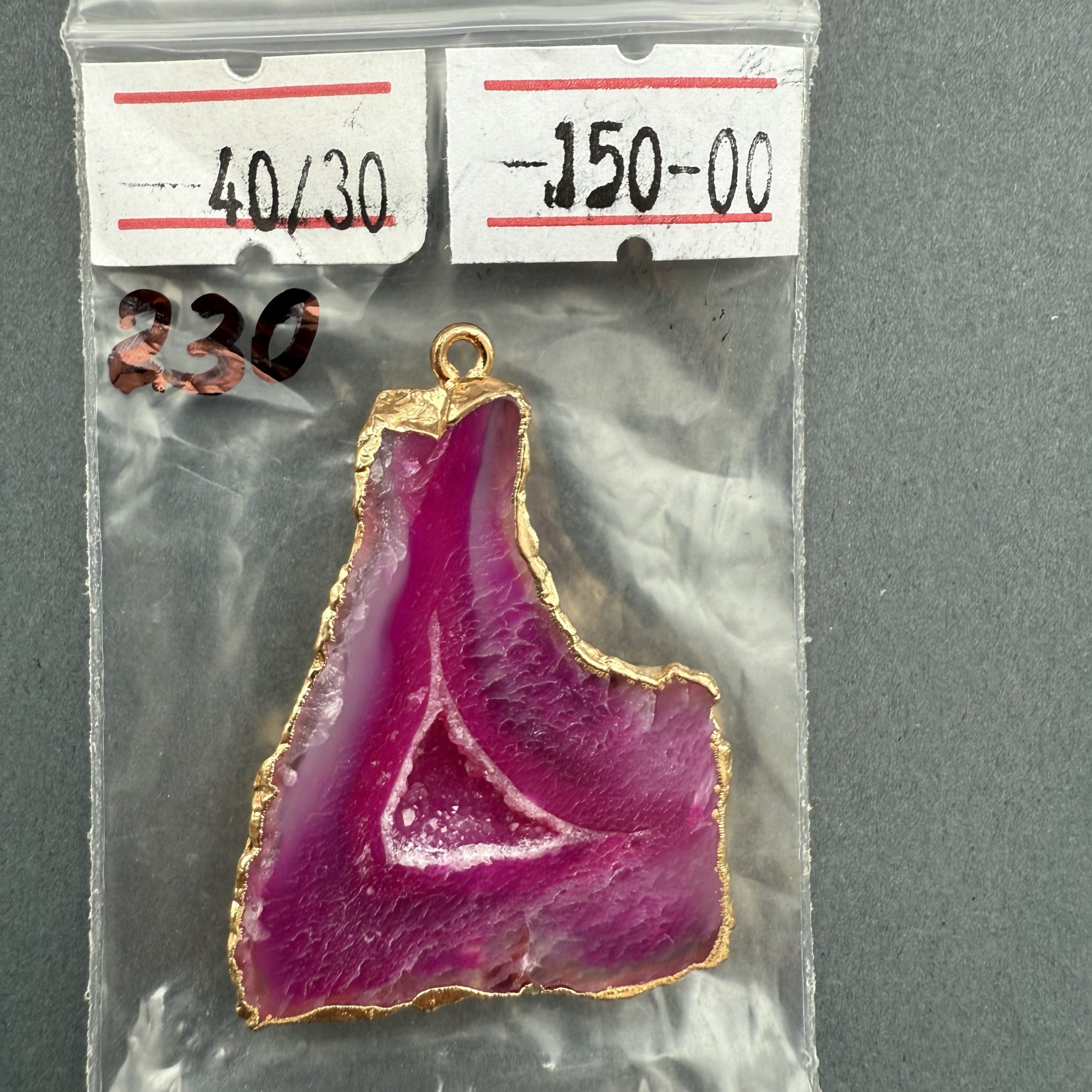 Друза 230 зріз агат, розмір 40/30 мм, 1 петля, відтінок рожевий, оправа золото кількість