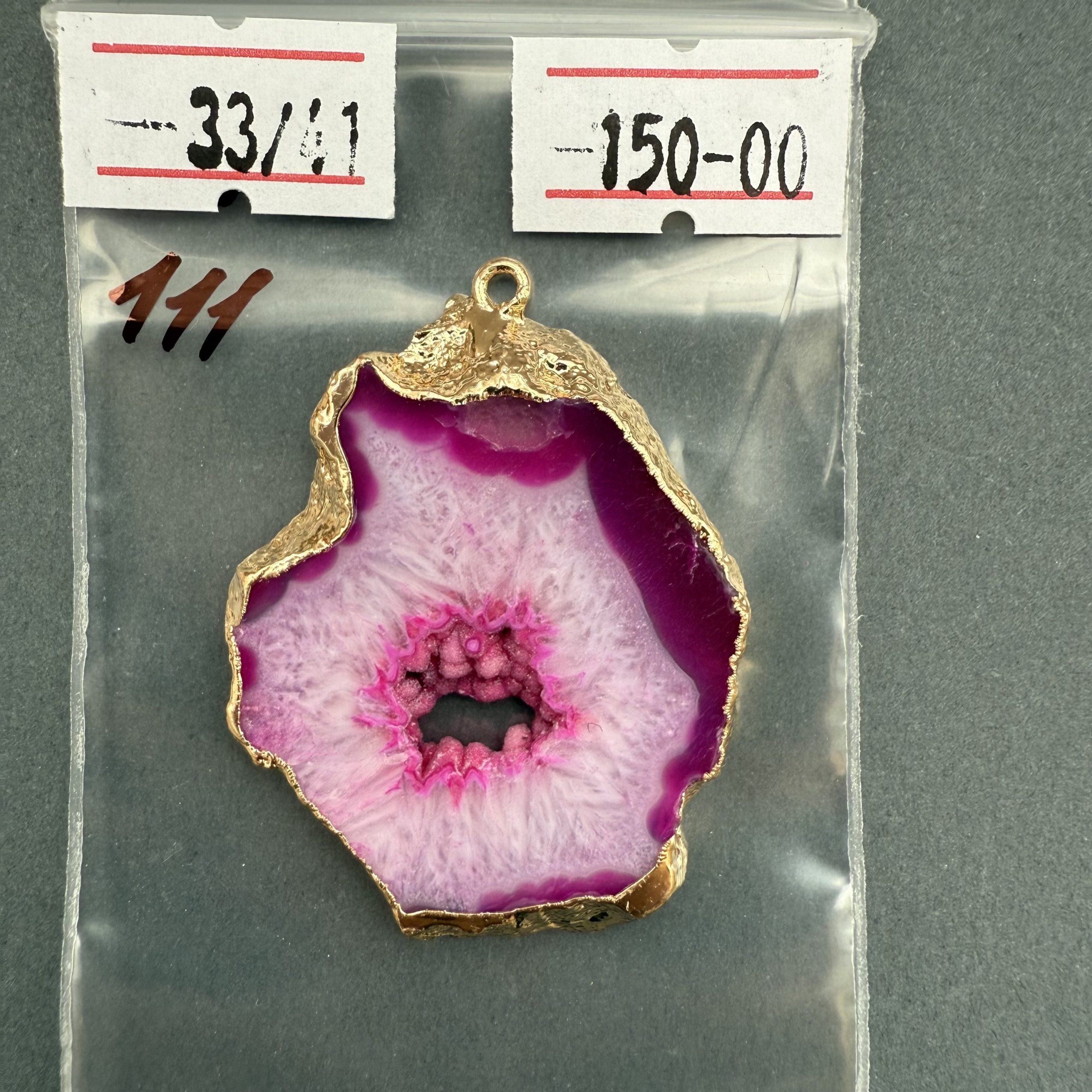 Друза 111 зріз агат, розмір 33/41 мм, 1 петля, відтінок рожевий, оправа золото кількість