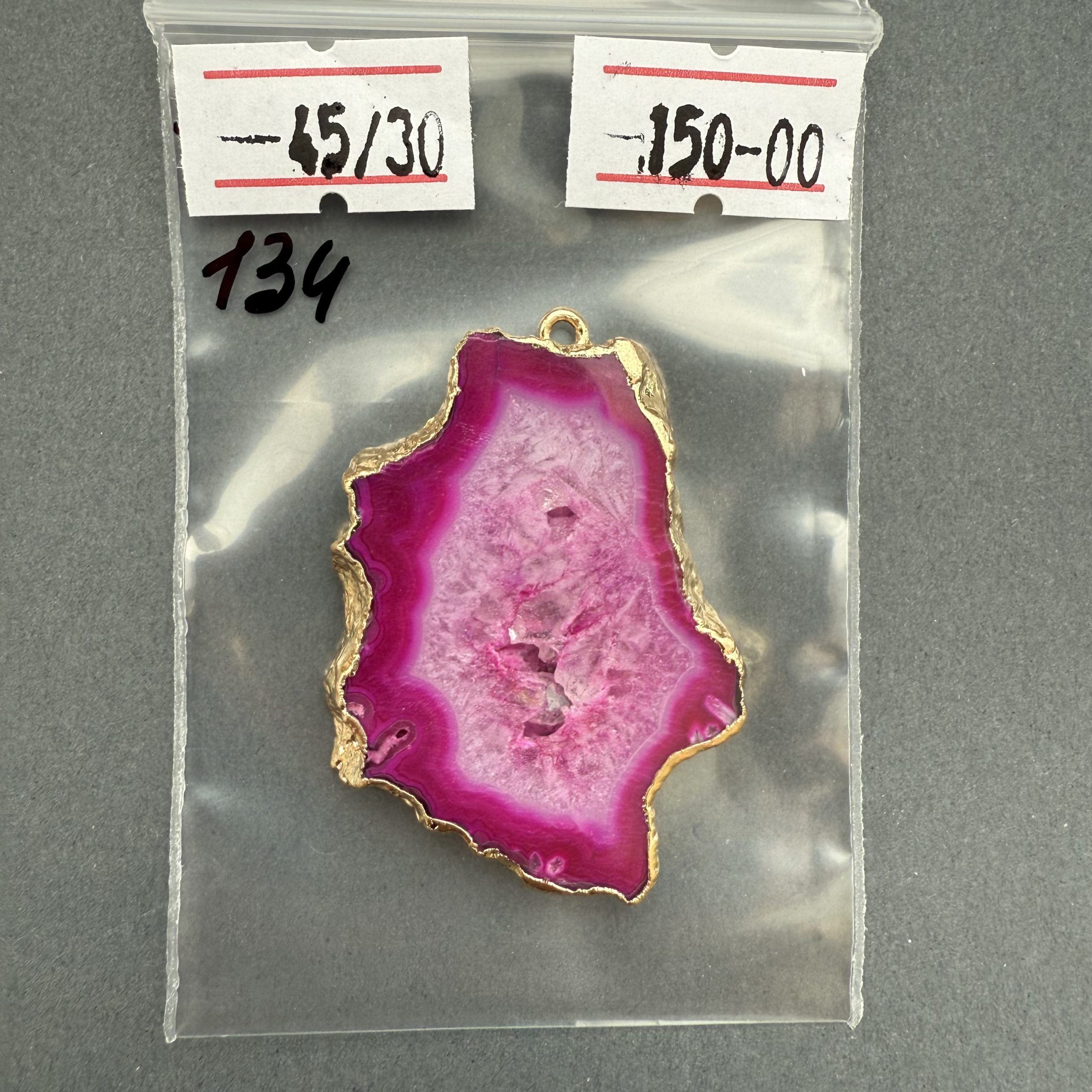 Друза 134 зріз агат, розмір 45/30 мм, 1 петля, відтінок рожевий , оправа золото кількість