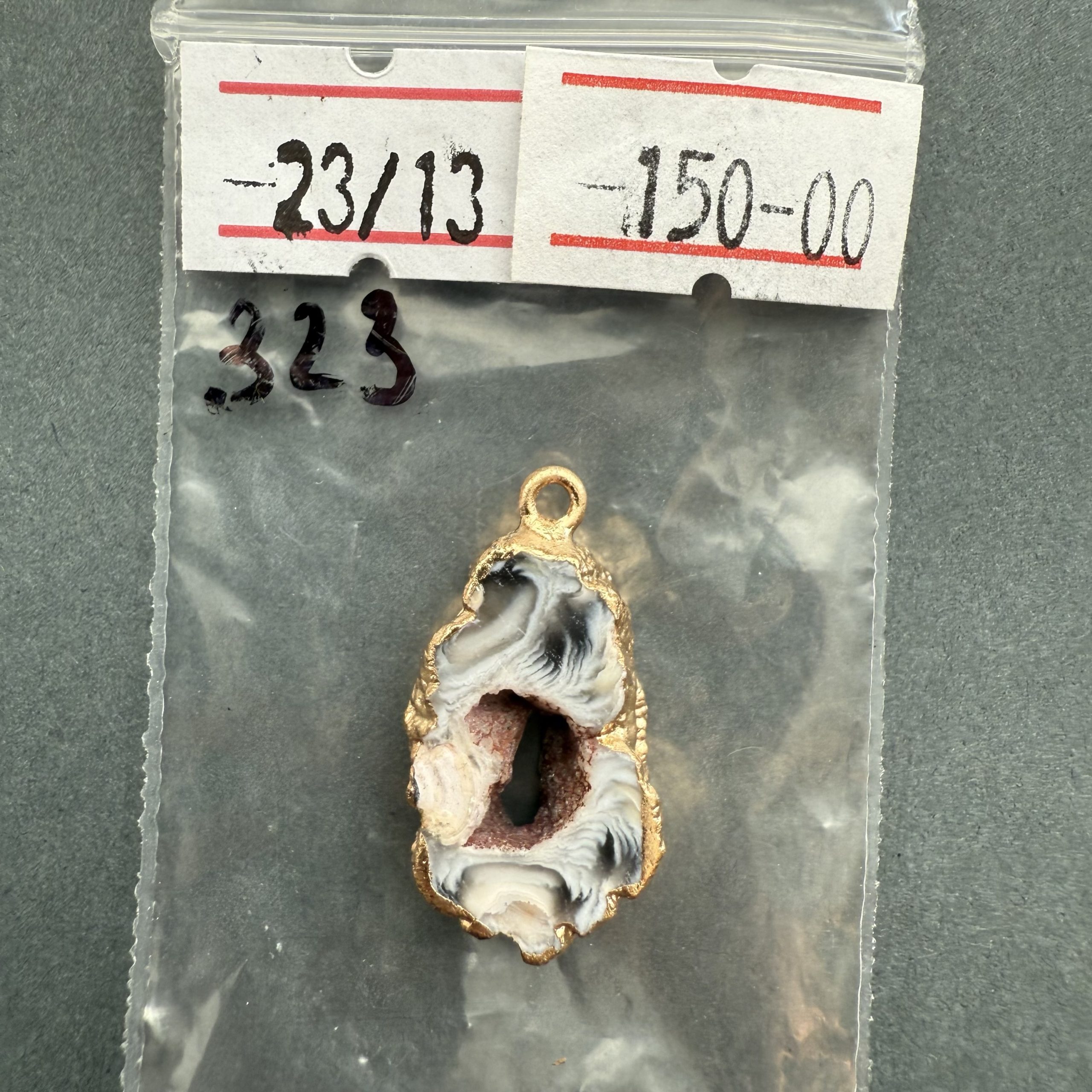 Друза 323 зріз агат, розмір 23/13 мм, 1 петля, відтінок чорний, оправа золото кількість