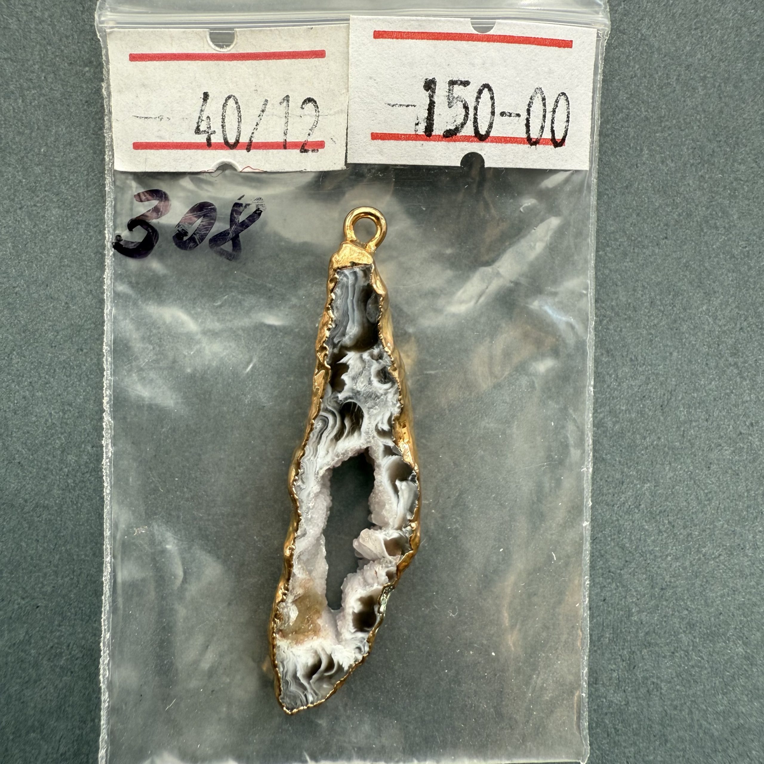 Друза 308 зріз агат, розмір 40/12 мм, 1 петля, відтінок сірий, оправа золото кількість