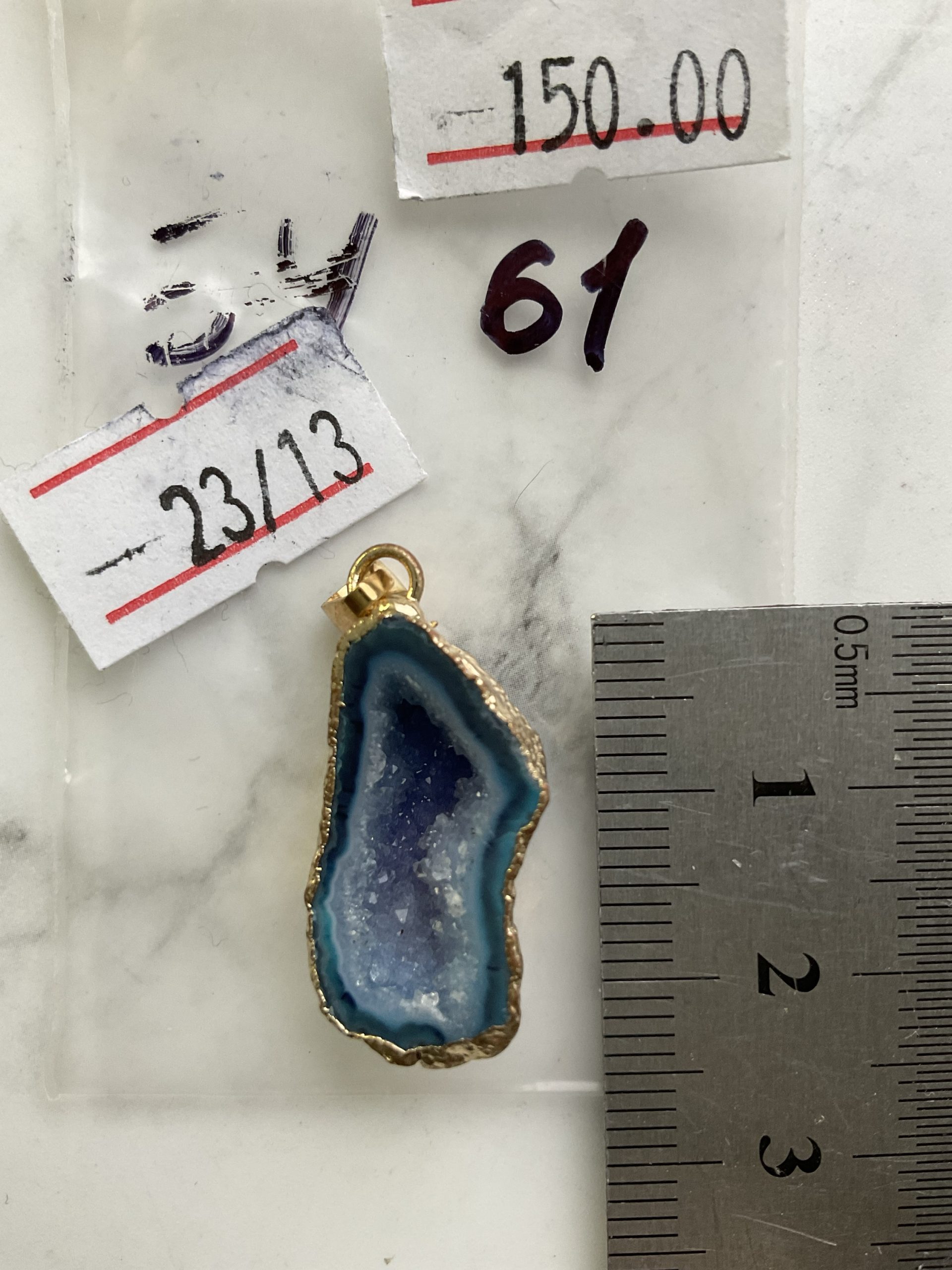 Друза 61 зріз агат, розмір 23/13 мм, 1 петля, відтінок блакитний, оплата золото кількість