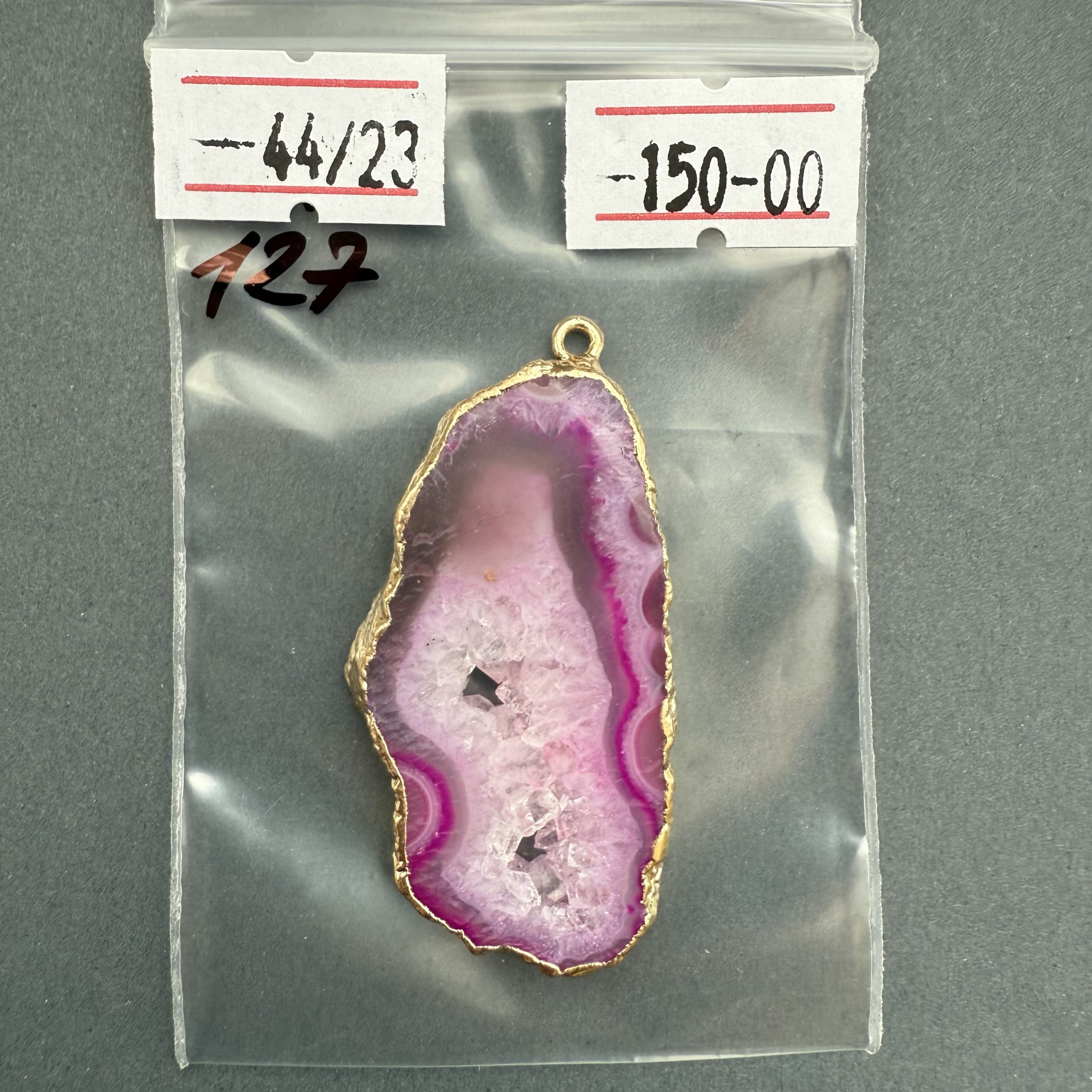 Друза 127 зріз агат, розмір 44/23 мм, 1 петля, відтінок рожевий , оправа золото кількість