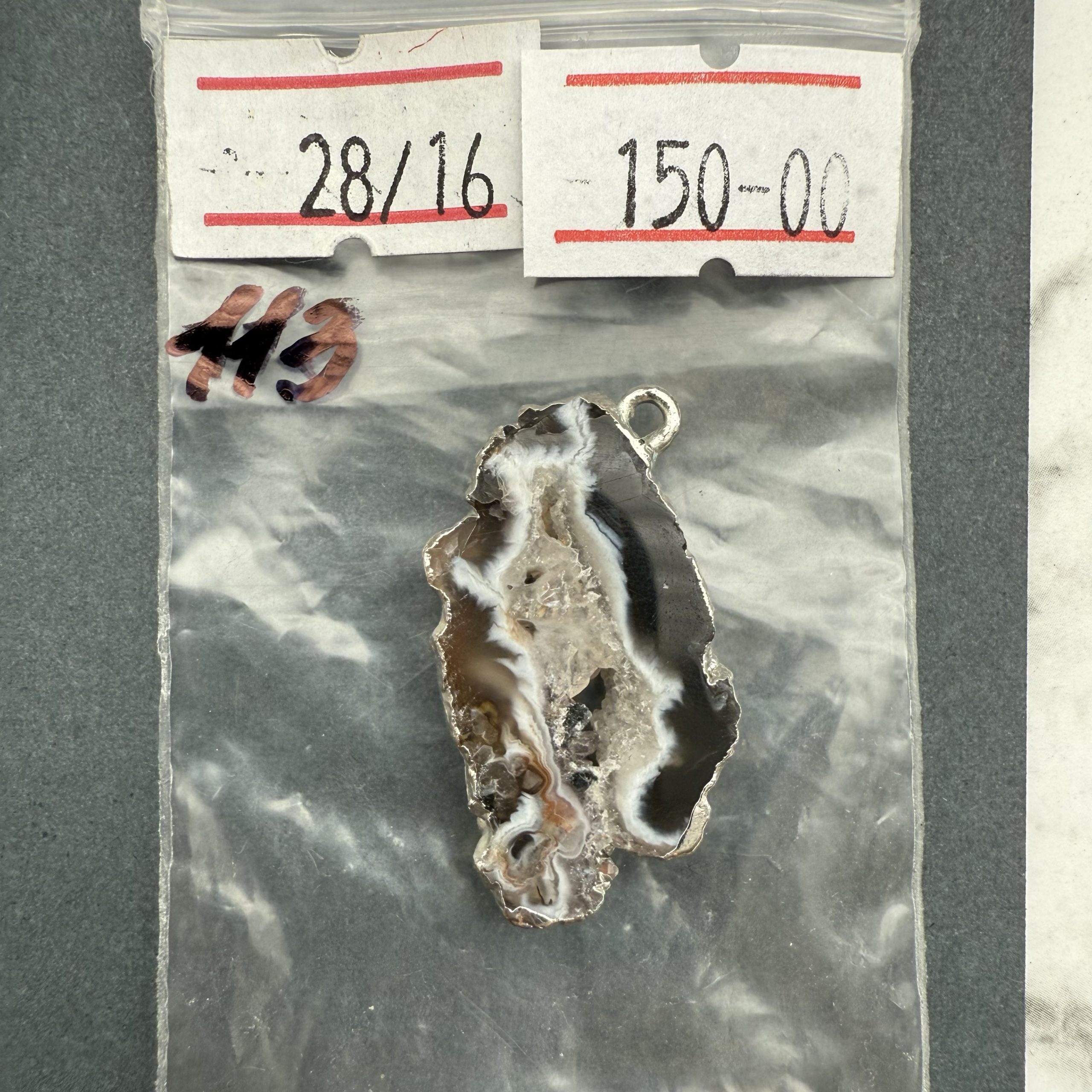 Друза 112 зріз агат, розмір 22/13 мм, відтінок чорний , оправа срібло