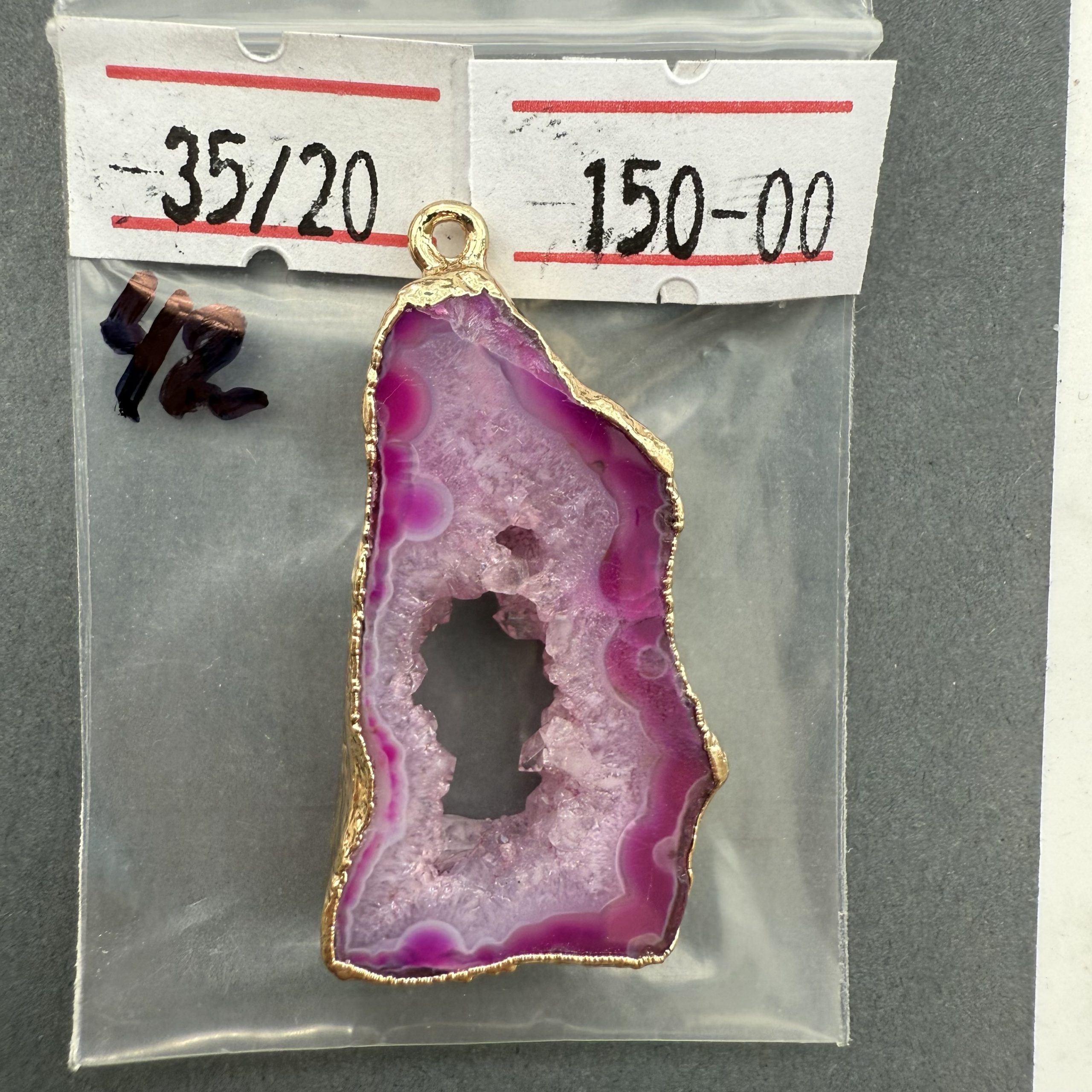 Друза 42 зріз агат, розмір 35/20мм, 1 петля, відтінок рожевий, оправа золото кількість