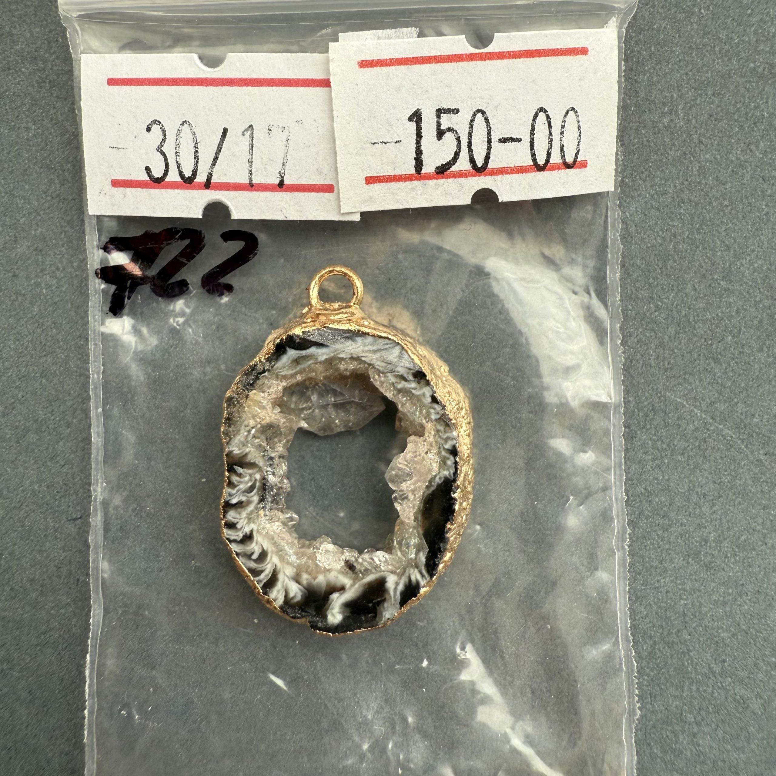 Друза 722 зріз агат, розмір 17/30 мм, 1 петля, відтінок чорний, оправа лимонне золото кількість