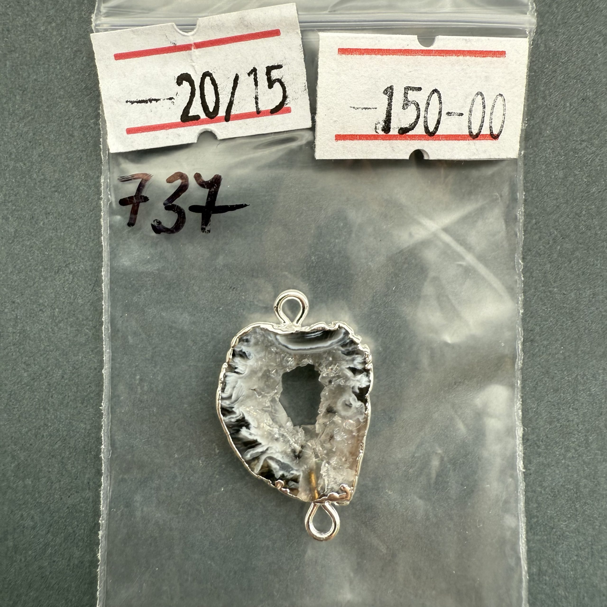 Друза 737 зріз агат, розмір 20/15 мм, 2 петлі, відтінок чорний, оправа срібло кількість