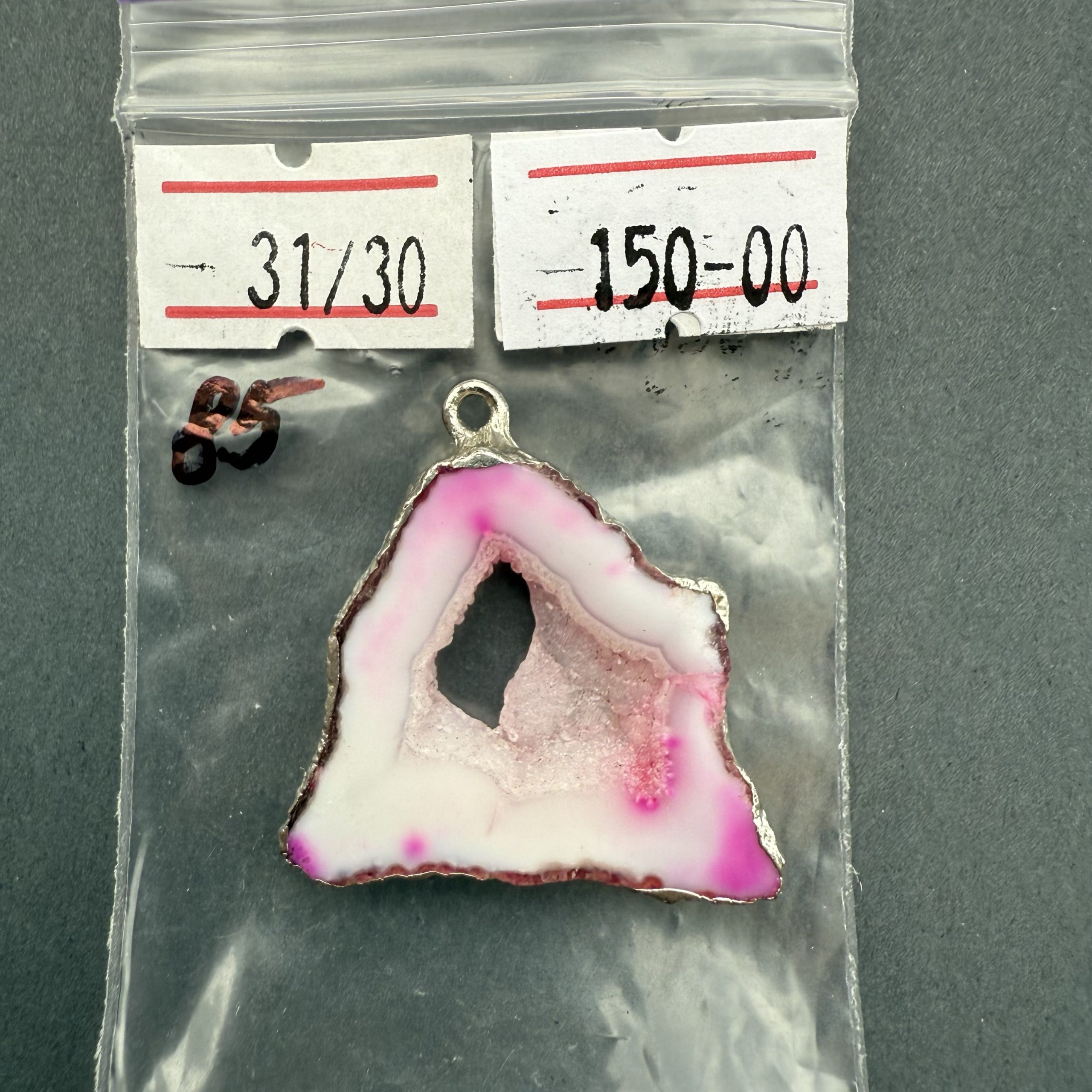 Друза 85 зріз агата, 31/30 мм, 1 петля, рожево-білий, оправа срібло кількість
