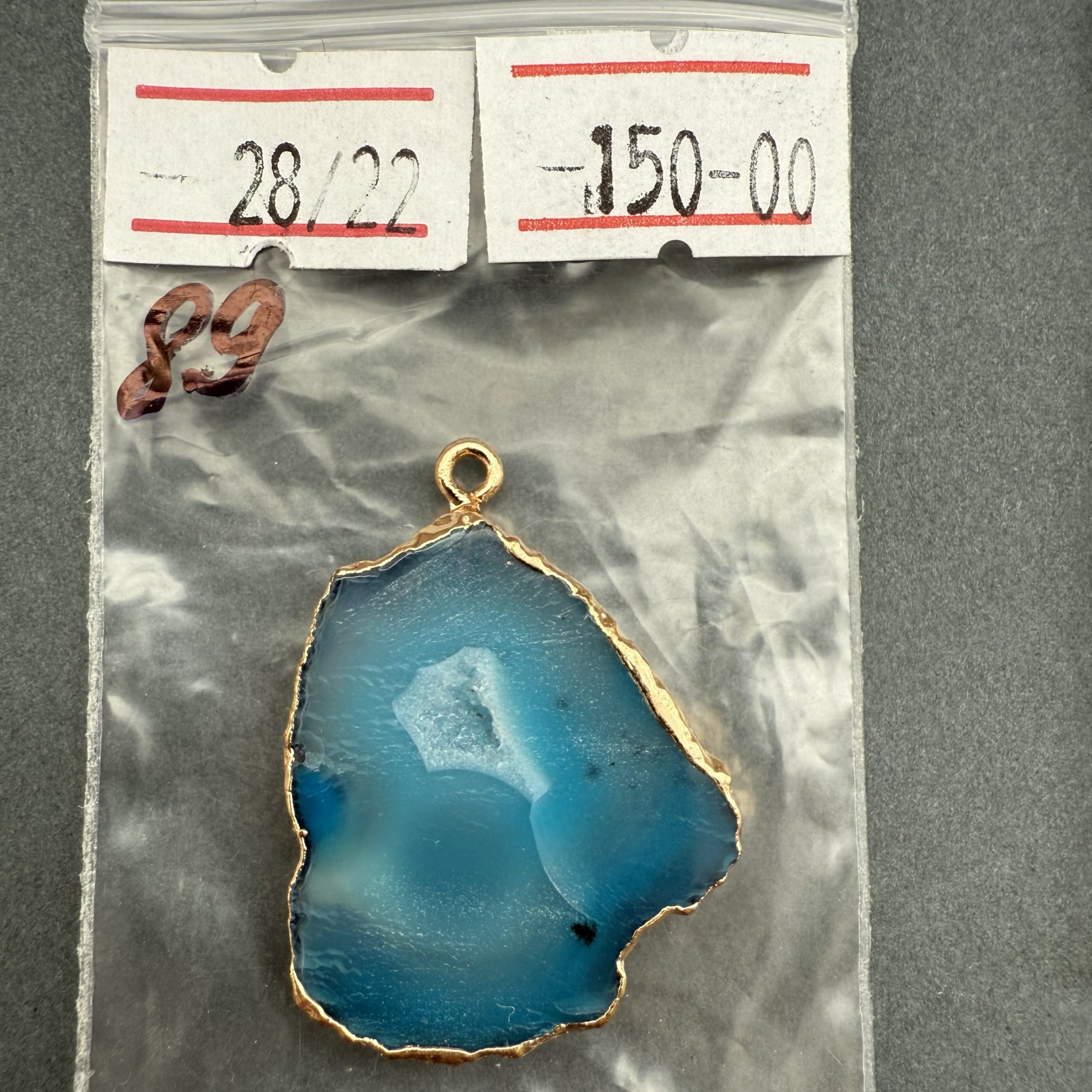 Друза 89 зріз агат, розмір 28/22 мм, 1 петля, відтінка блакитний, оправа золото кількість