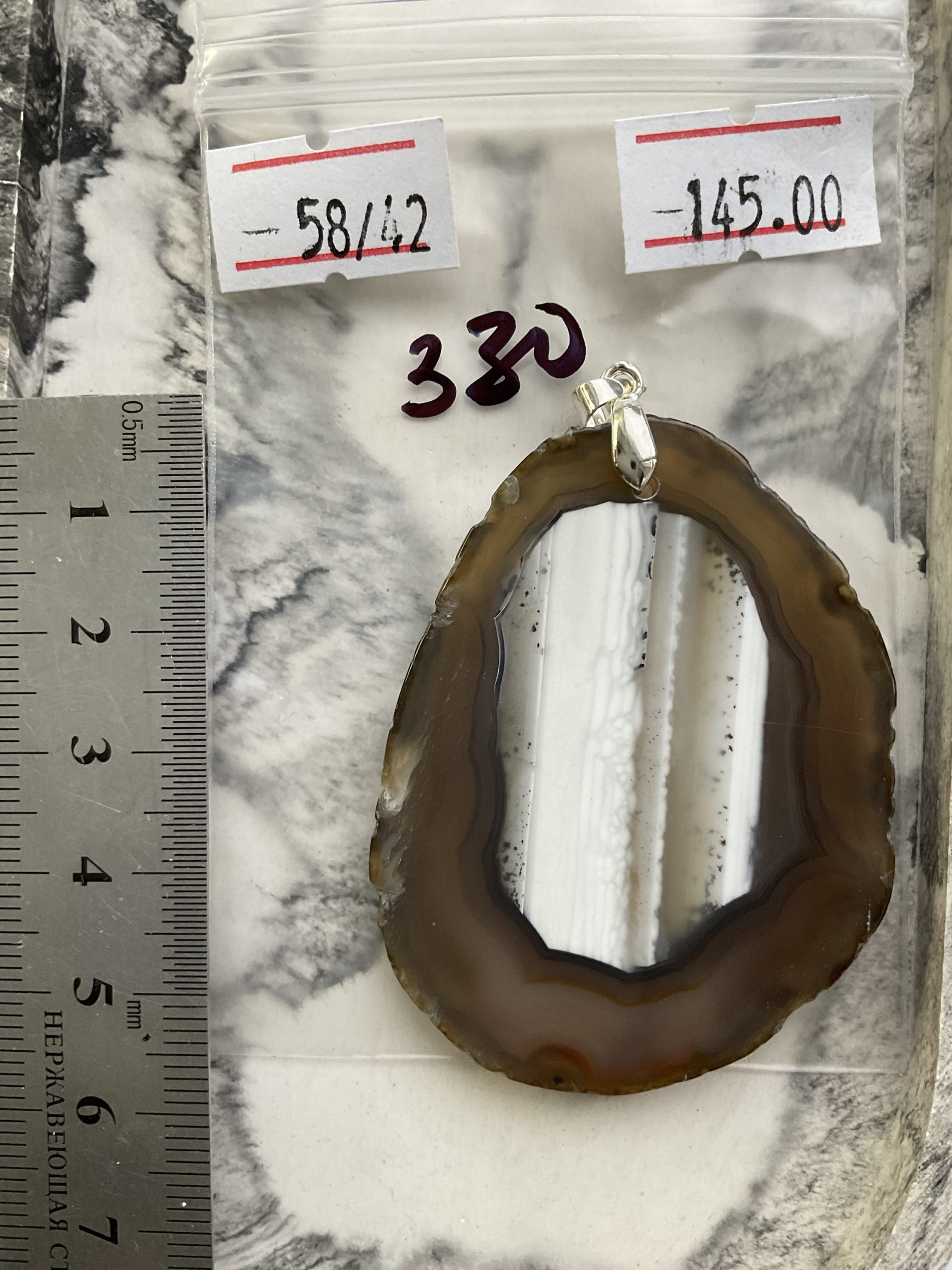Друза 330 зріз агат , розмір 58/42 мм, 1 петля, відтінок коричневий , оправа срібло. кількість