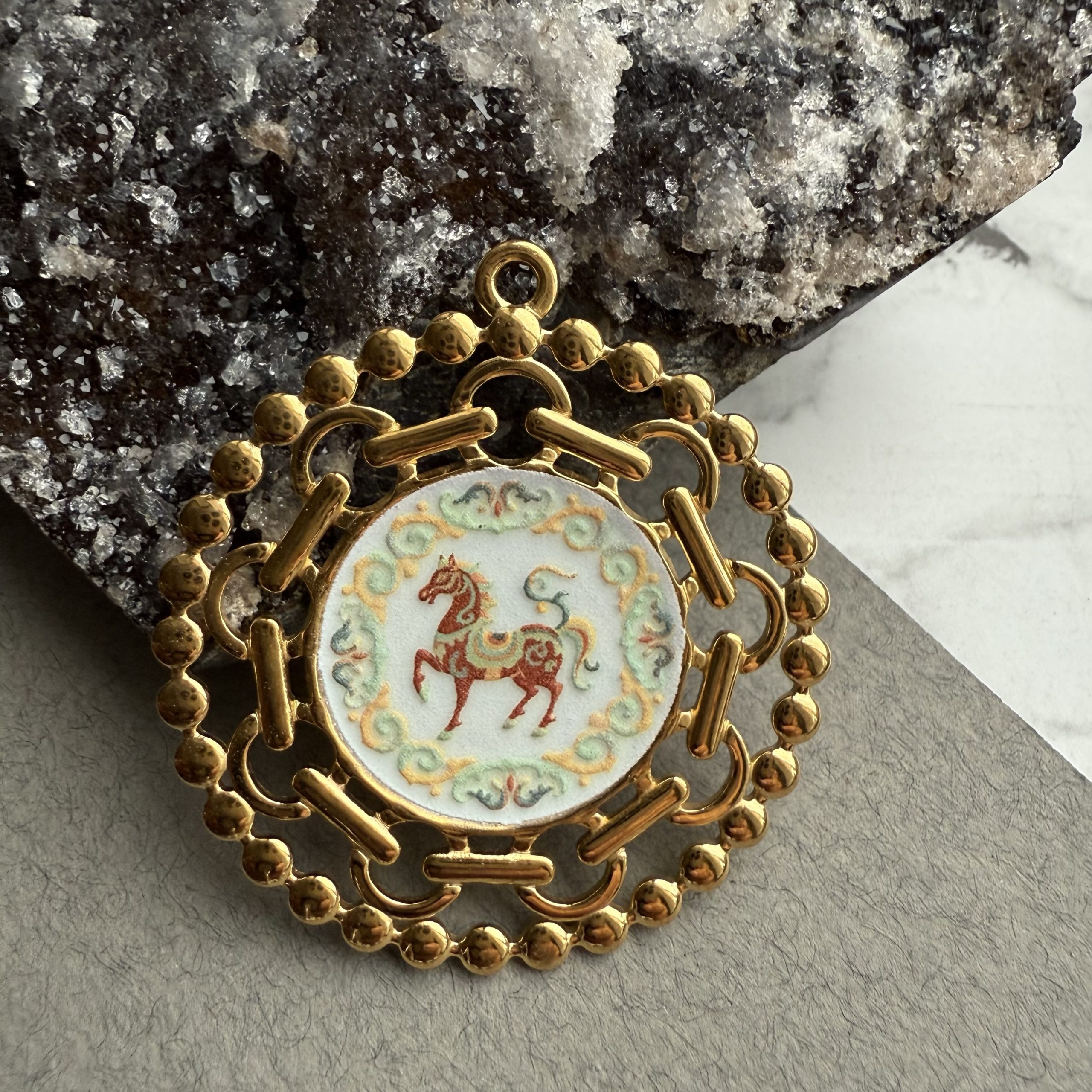 Підвіс Кінь Емаль, гіпоалергений сплав по латуні, відтінок лимонне золото . Розмір 43/40 мм . Ціна 140 грн шт