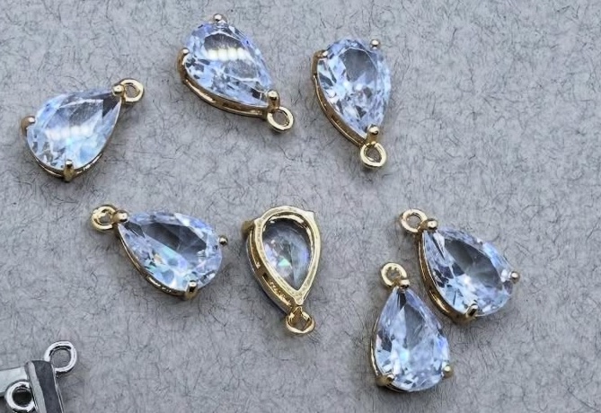 Підвіс Крапля міні, ювелірне скло в оправі позолота по латуні, 1 петля, відтінок прозорі . Розмір 8/12 мм . Ціна за шт кількість