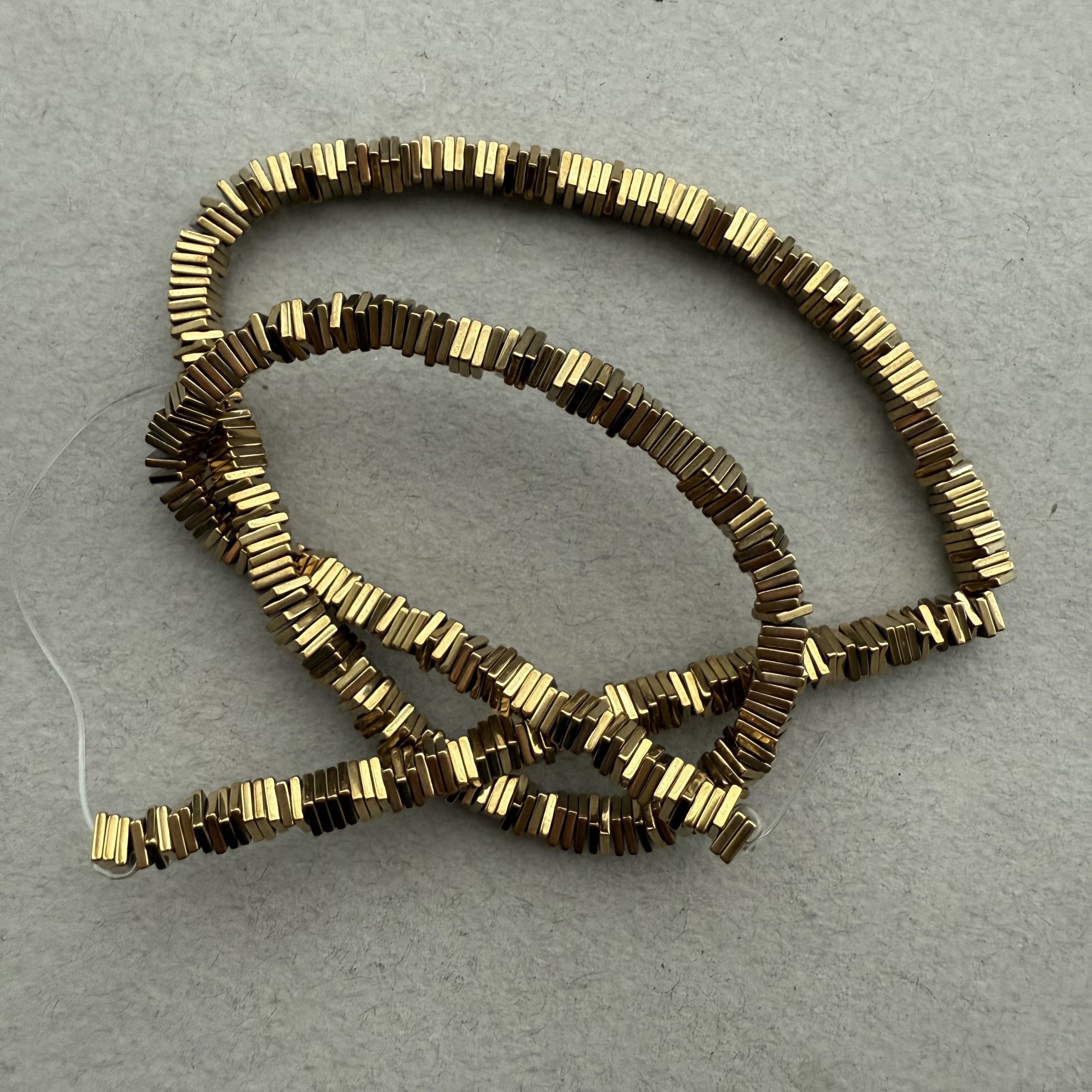 Гематит Квадрат, зі стійким покриттям, відтінок тепле жовте золото і насичений срібло . Розмір 4 мм , 39 см . Ціна за нитку кількість
