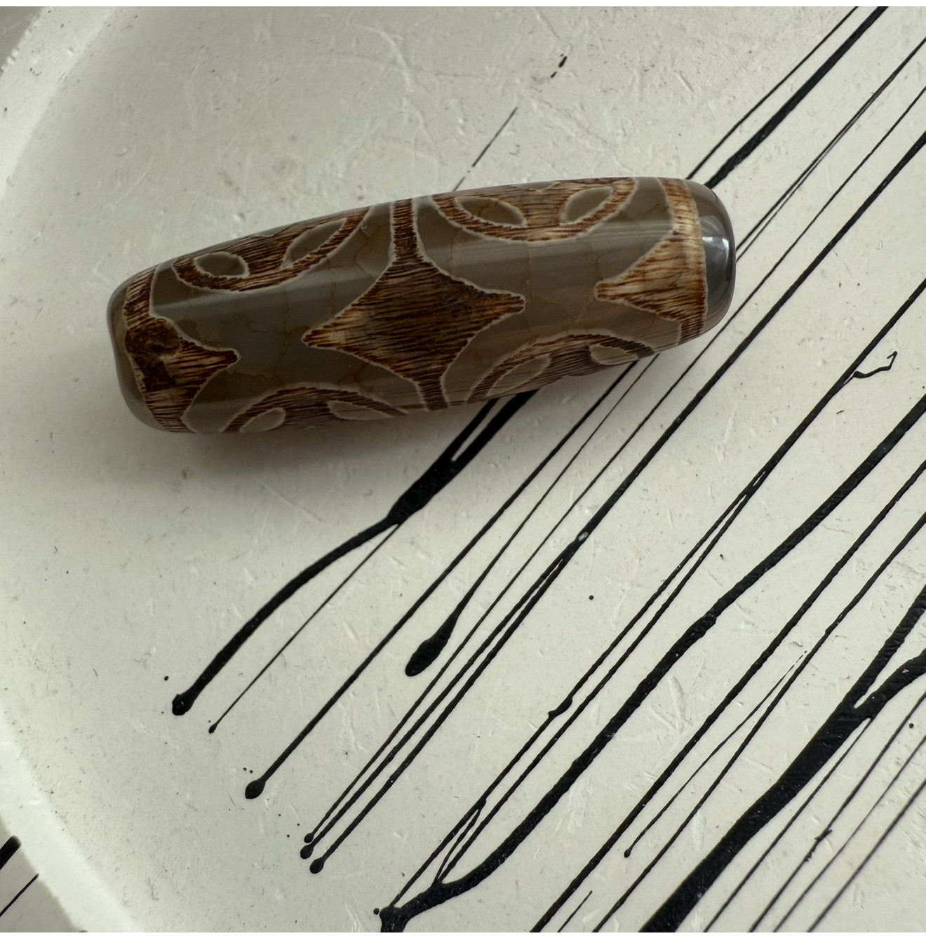 Намистина Агат Дзі, форма еліпс . Розмір 30/10 мм . Ціна за 1 шт