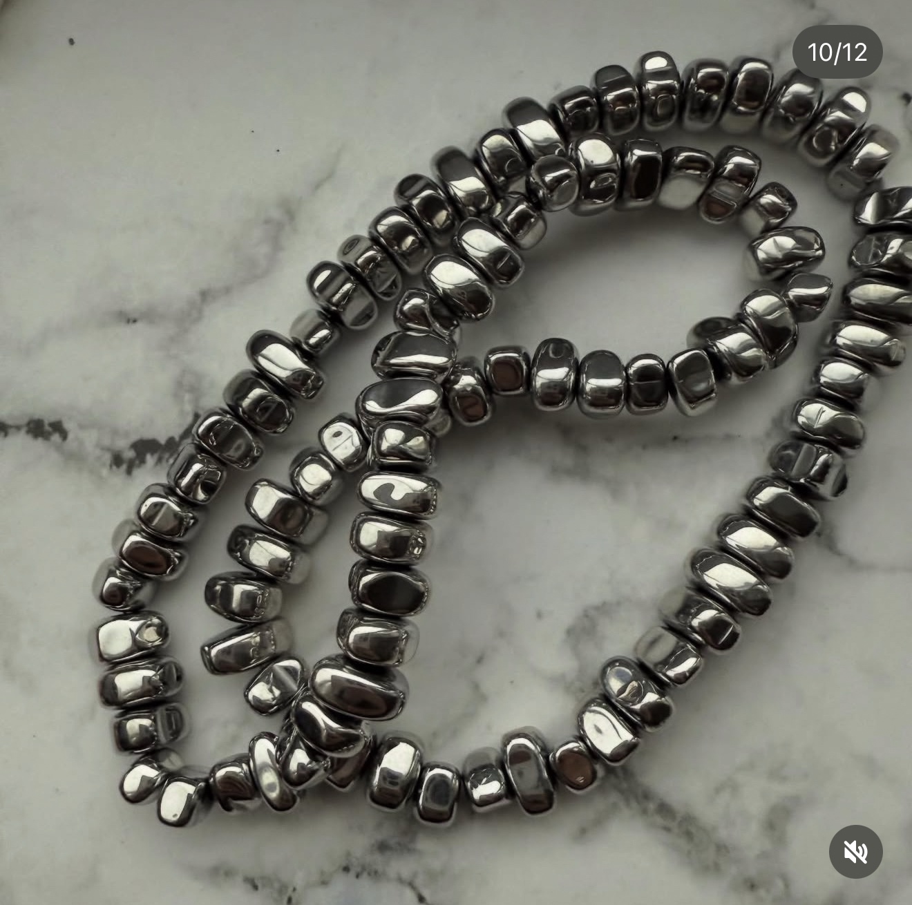 Намистини Гематит , фріформ , відтінок срібло Розмір 5/8 мм, 40 см Ціна за нитку кількість