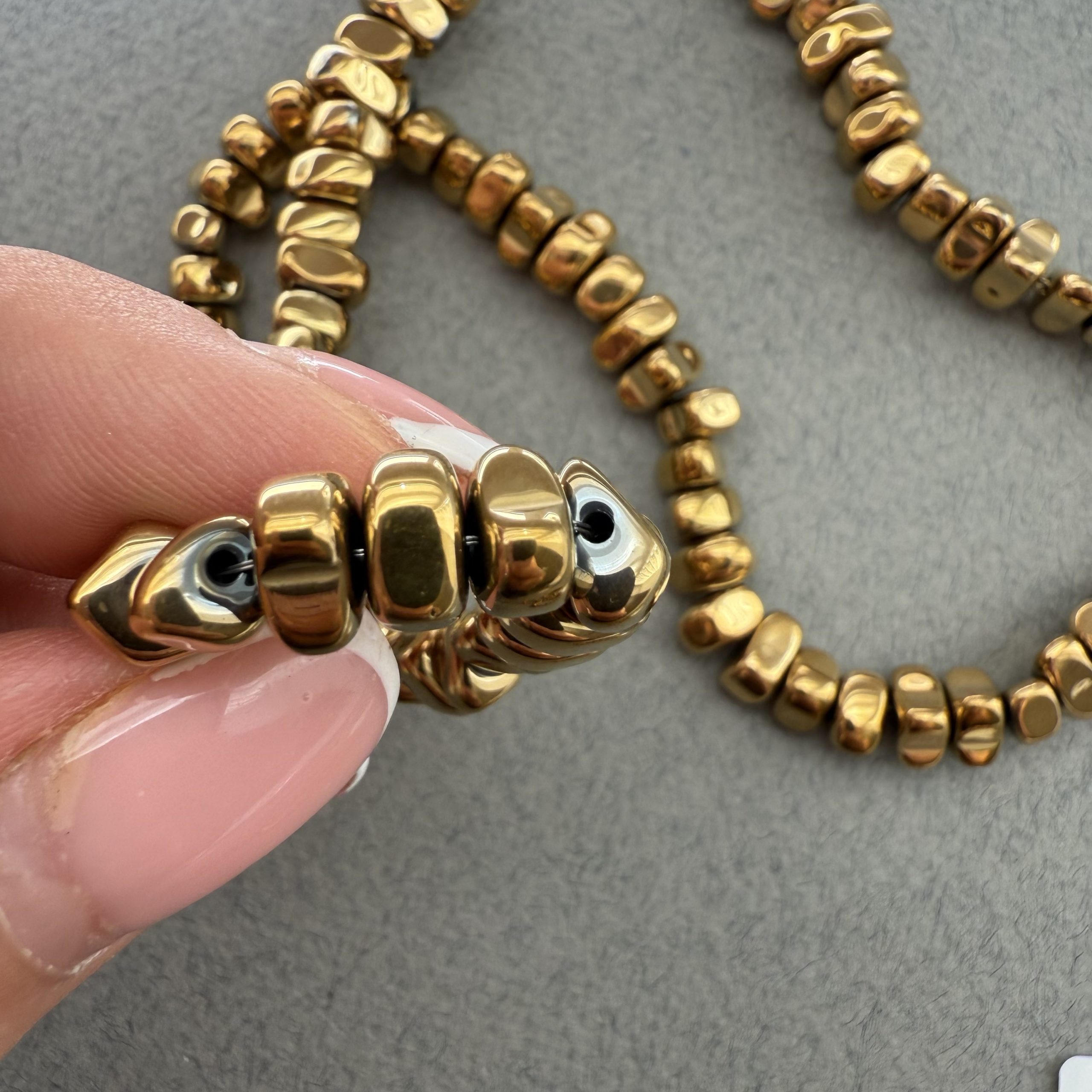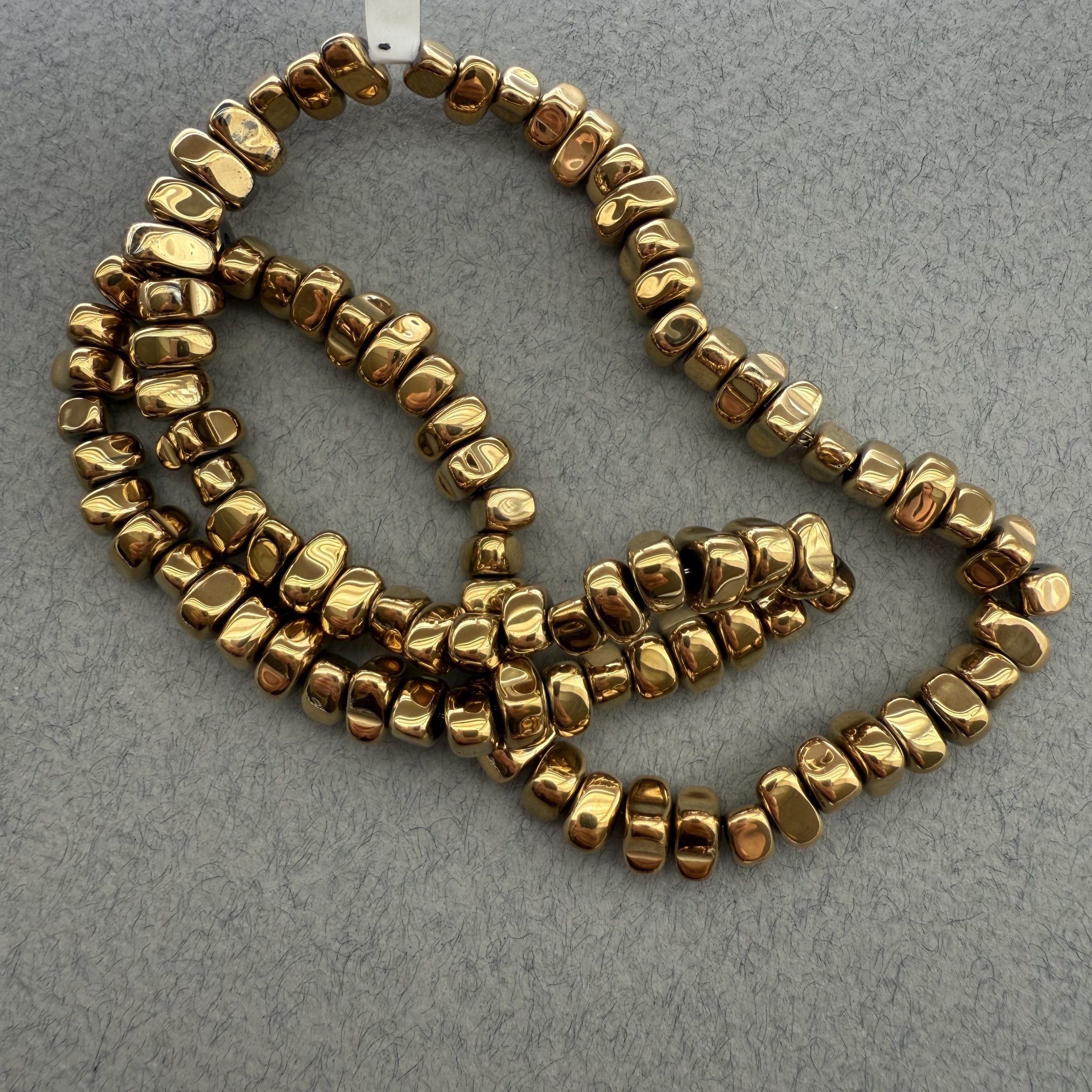 Намистини Гематит Трикутник Фріформ, відтінок тепле жовте золото . Розмір 4/7 мм, довжина 40 см . Ціна за нитку кількість