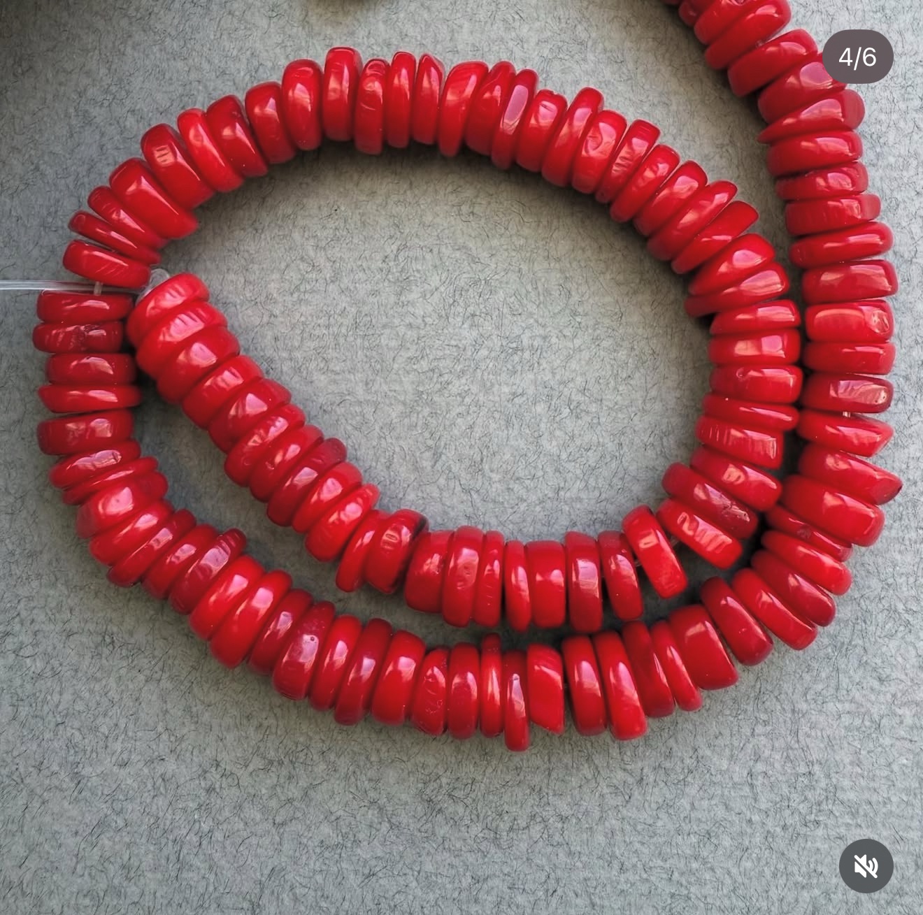 Намистини Корал, форма Рондель. Розмір 9 мм, довжина 39 см. Ціна за нитку