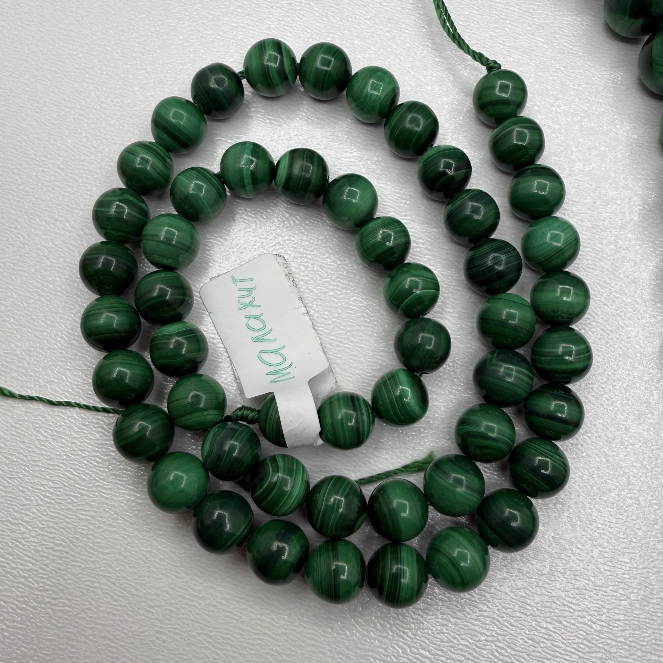 Намистини Малахіт, форма куля . Розмір 9,5-10 мм, 40 см . Ціна за нитку