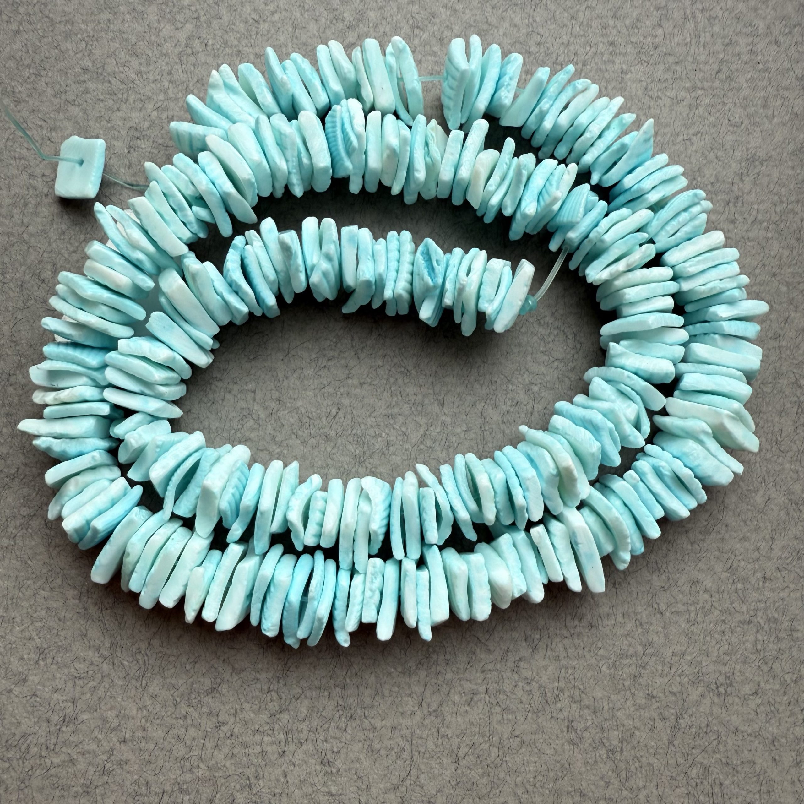 Намистини Панцир чипси, груба огранка, тонований з ефектом матовим, відтінок блакитний . Розмір 40 см нитка . Ціна за нитку
