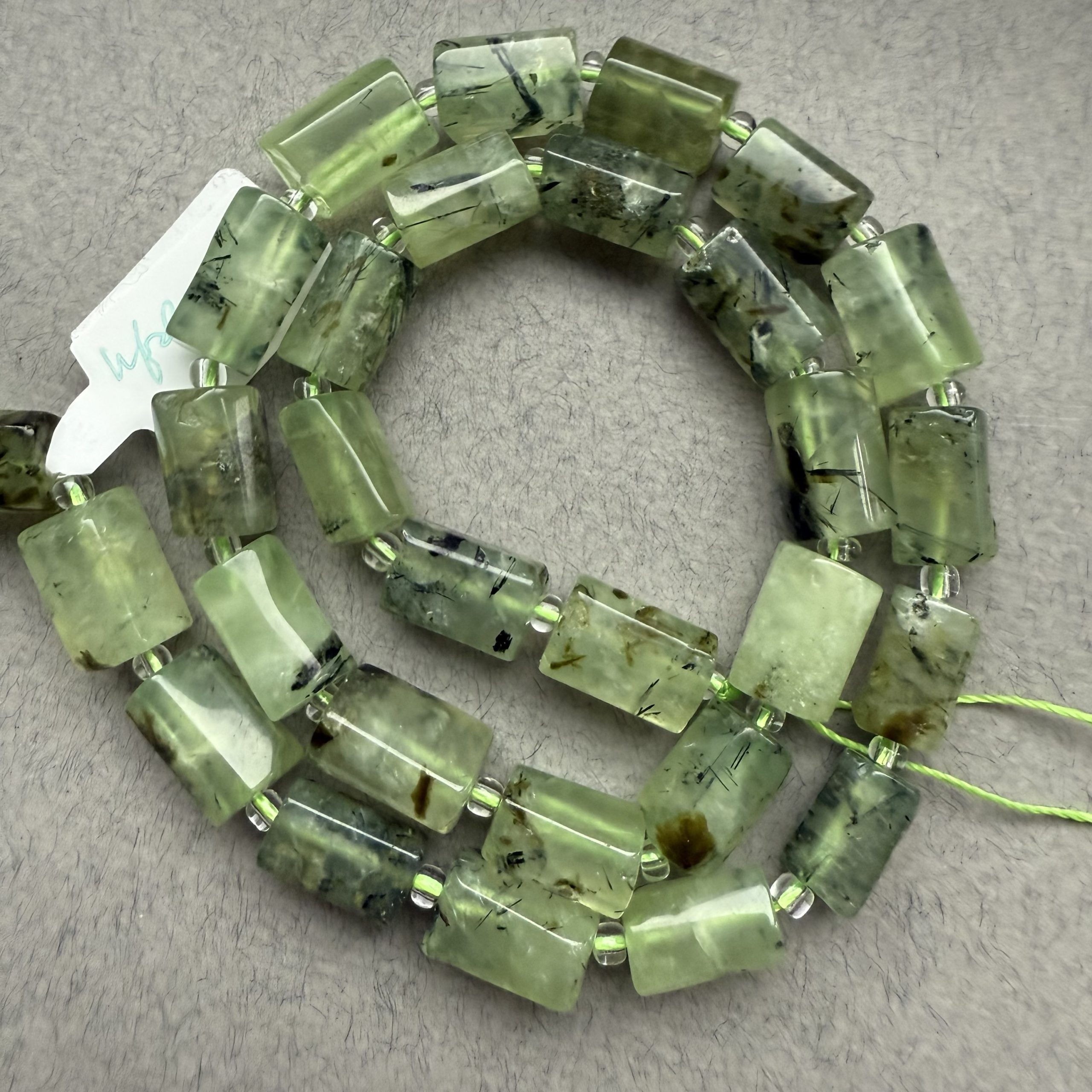 Намистини Преніт, форма циліндр , відтінок зенений . Розмір 8/11 мм, довжина 40 см . Ціна за нитку