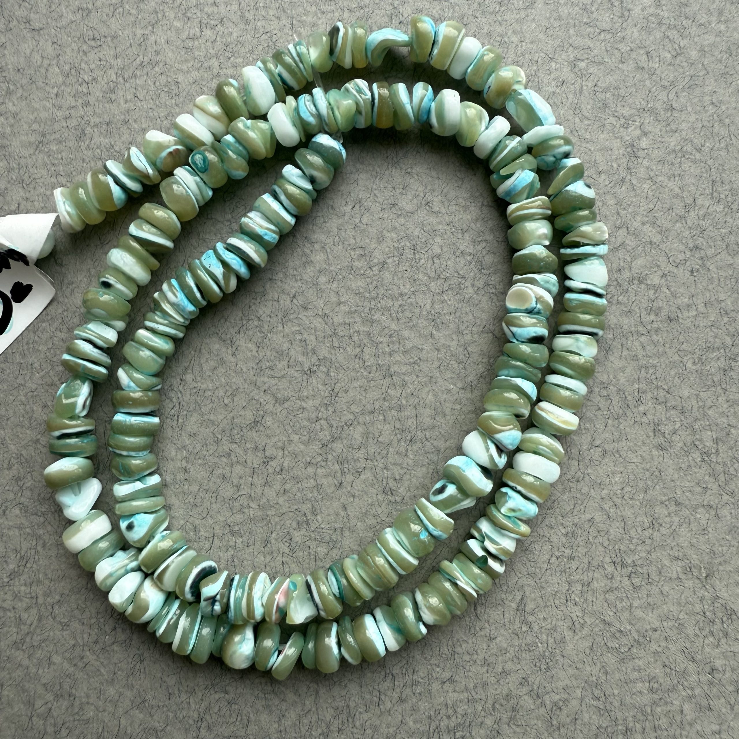 Перламутр Рондель, форма рондель, відтінок салатний . Розмір 5/6 мм і, довжина 38 см . Ціна за низку кількість