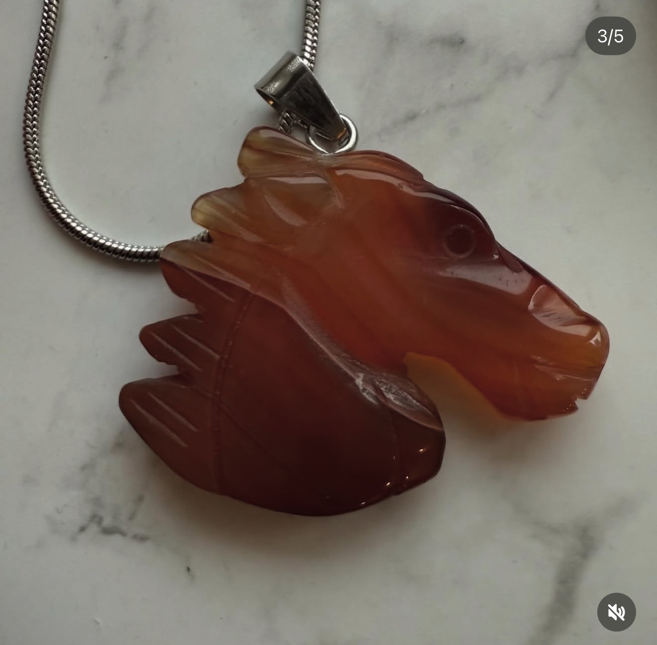 Підвіс Сердолік , форма кінь з різьбою + ланцюжок сталь . Розмір 35/38/10 мм . Ціна за шт