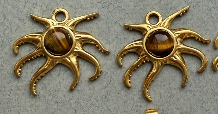 Підвіс Бабка, тигрове око, сталь, відтінок тепле жовте золото . розмір 30/30 мм . ціна за штуку