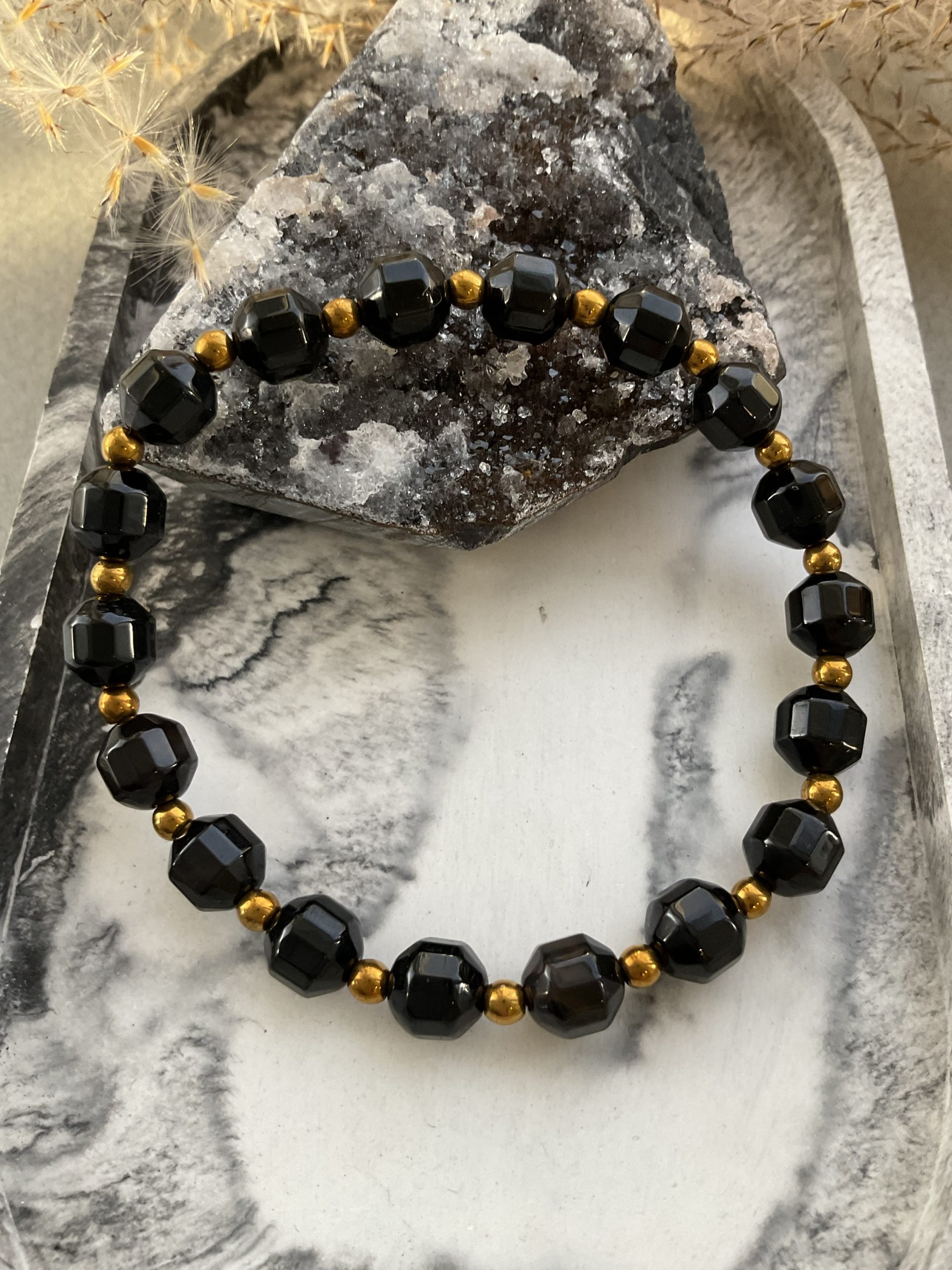 Браслет Агат, форма куля, гладка з гематитом. Розмір намистини 5-5мм, розмір 17см обхвату. Ціна за шт. кількість