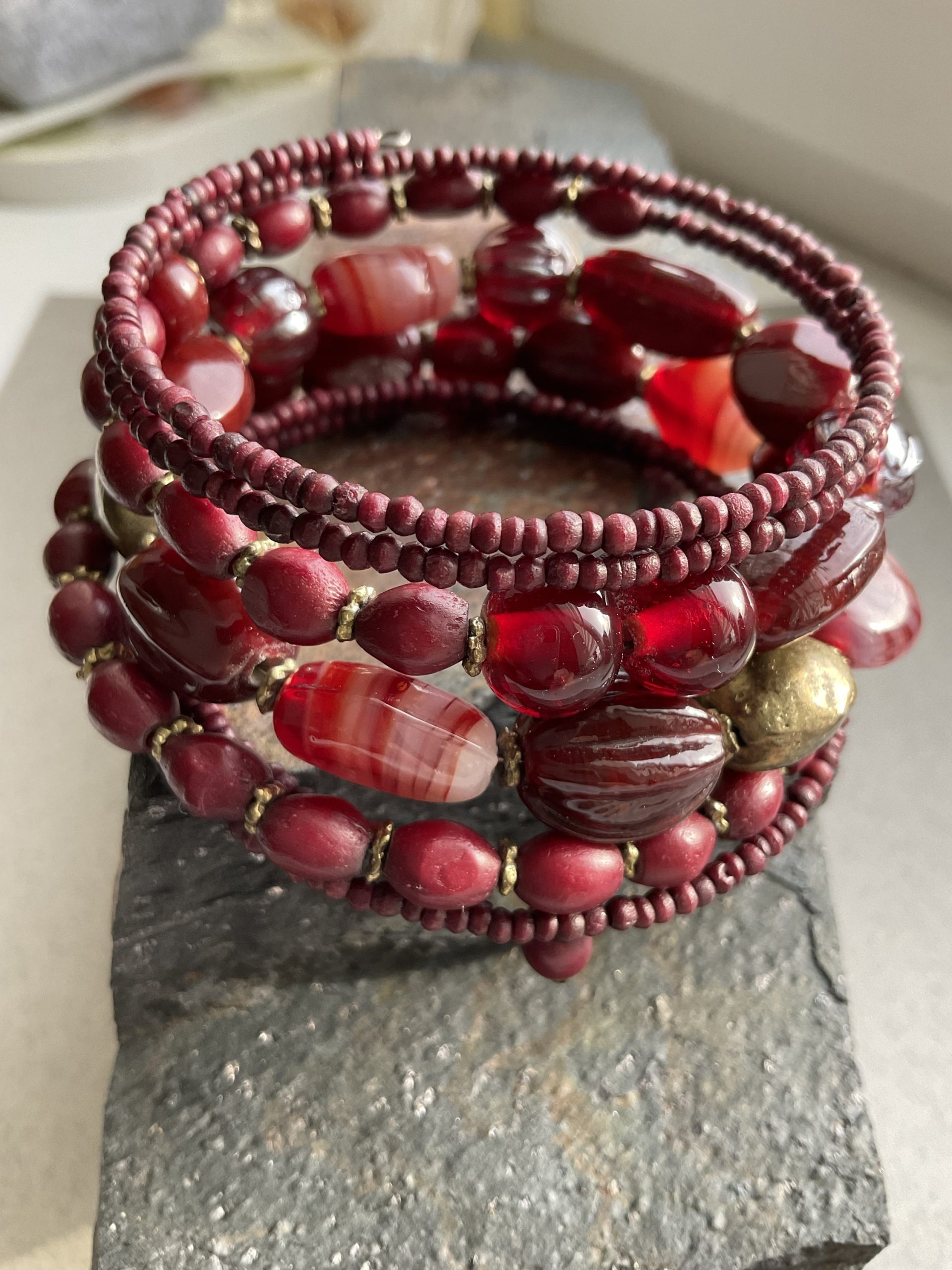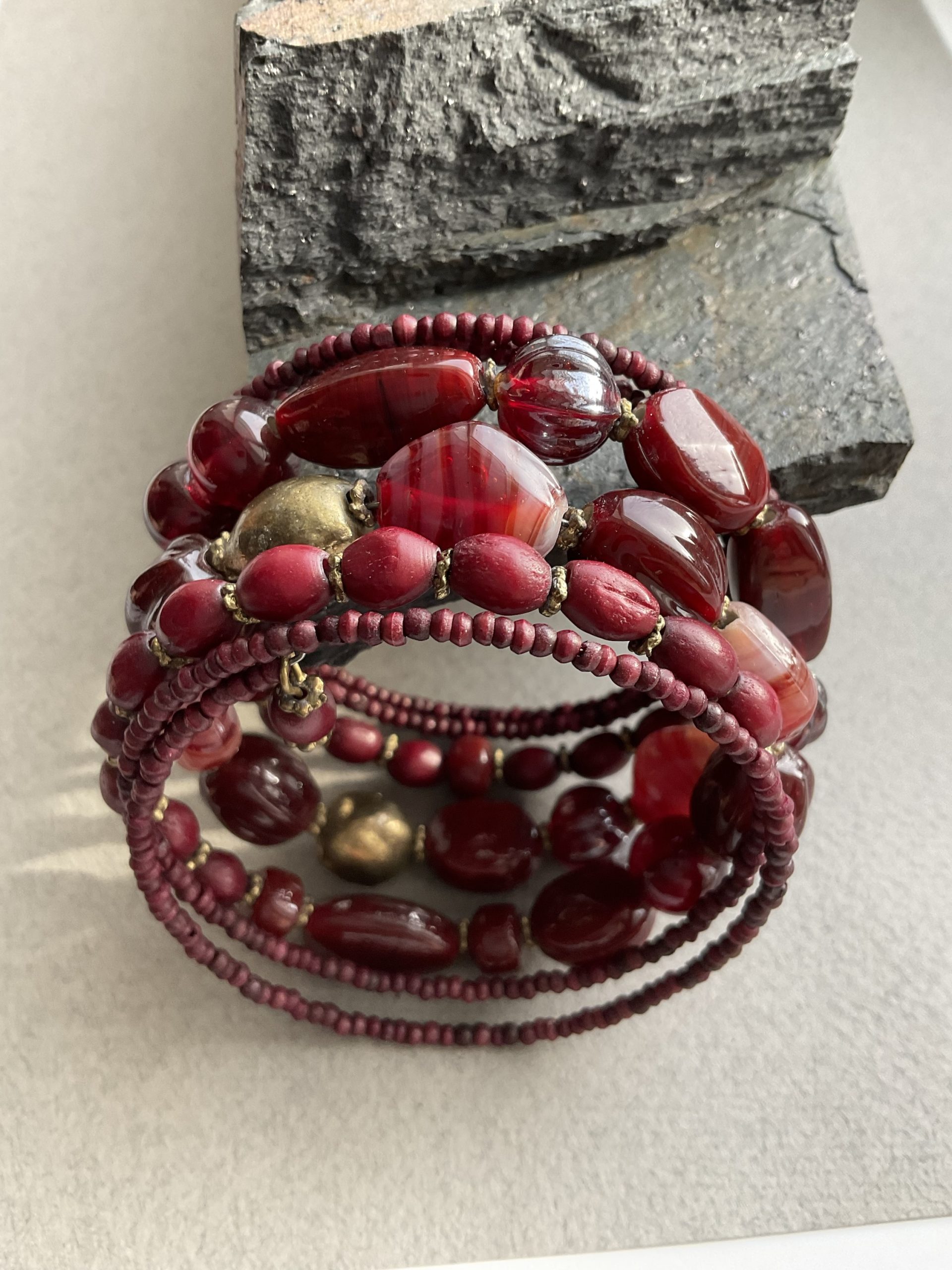 Браслет багаторядний, деревний кокос, намистини лемпворк ручної роботи, Розмір 16см обхвату. Ціна за шт. кількість