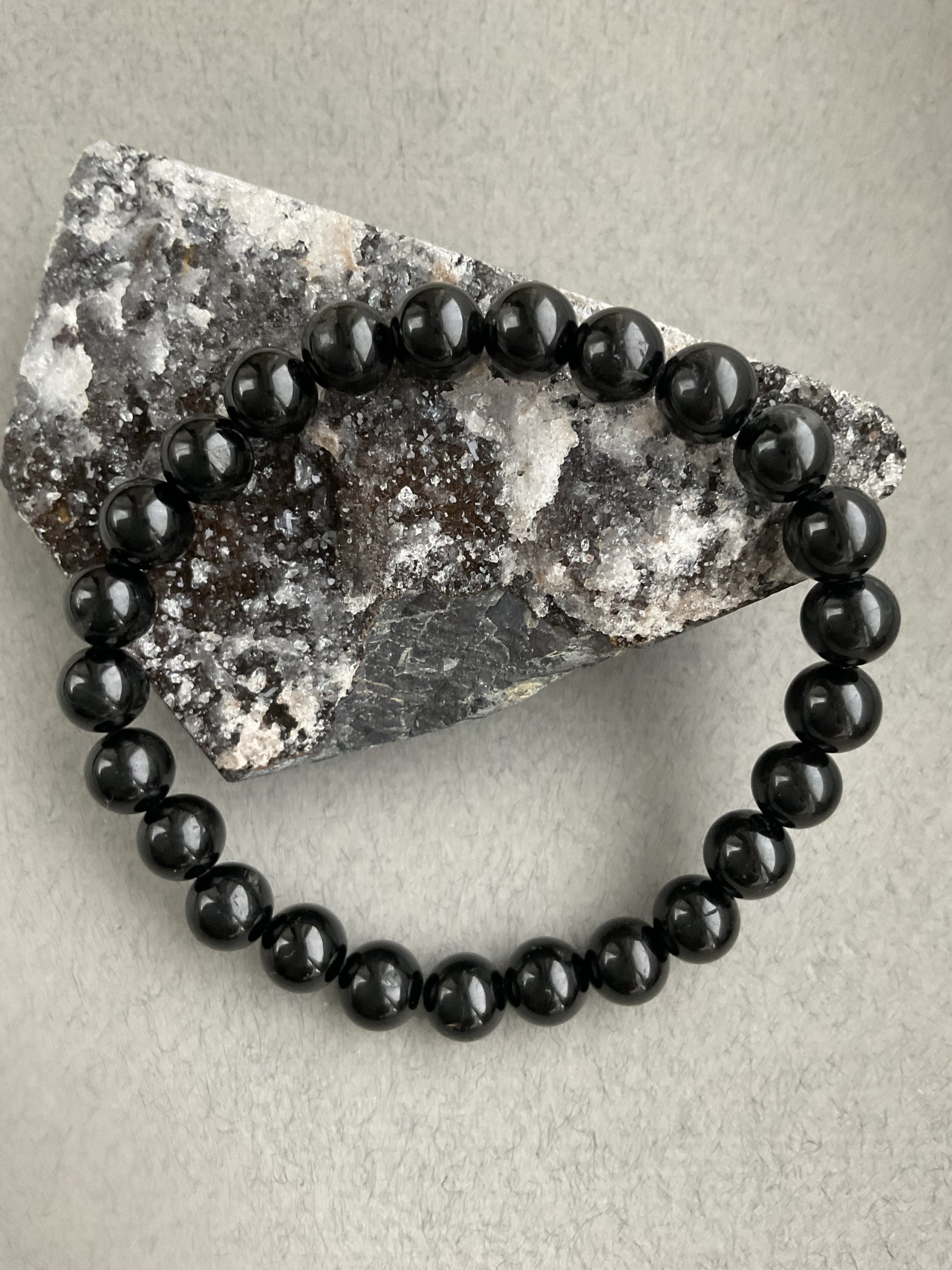 Браслет Чорний турмалін, форма куля, гладка. Розмір намистини 8мм, розмір 17см обхвату. Ціна за шт