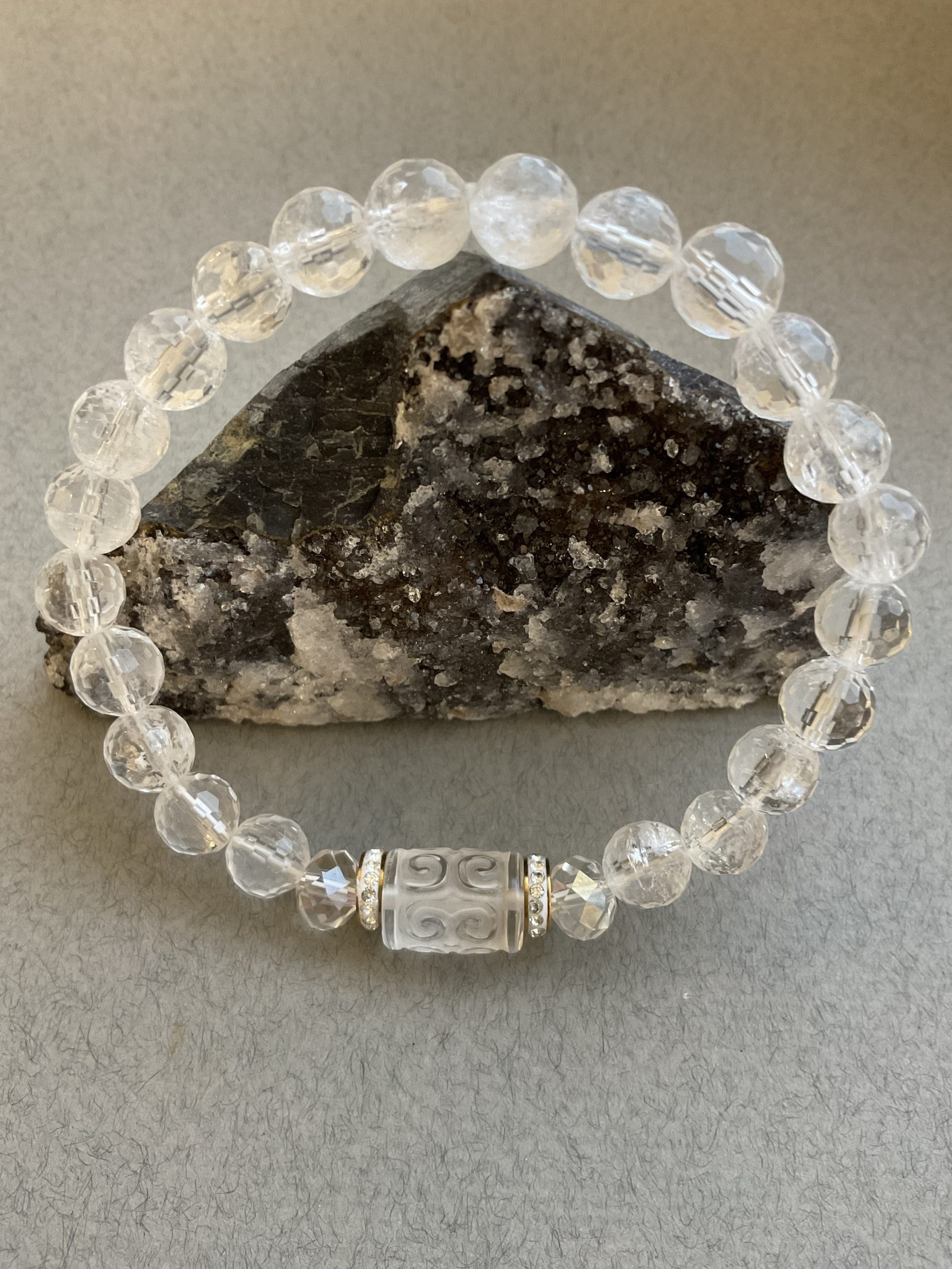 Браслет Гірський Хрушталь,форма куля граньована з кришталевою намистиною. Розмір намистини 8мм, розмір18см обхвату. Ціна за шт кількість