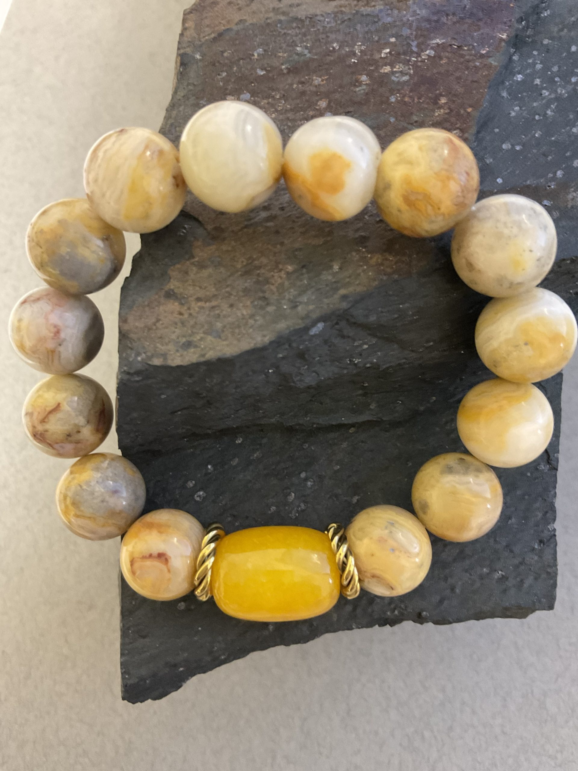 Браслет Крейзі Агат, форма куля ,гладка з вставкою намистини. Розмір намистини 12мм, розмір 16,5см обхвату. Ціна за шт.