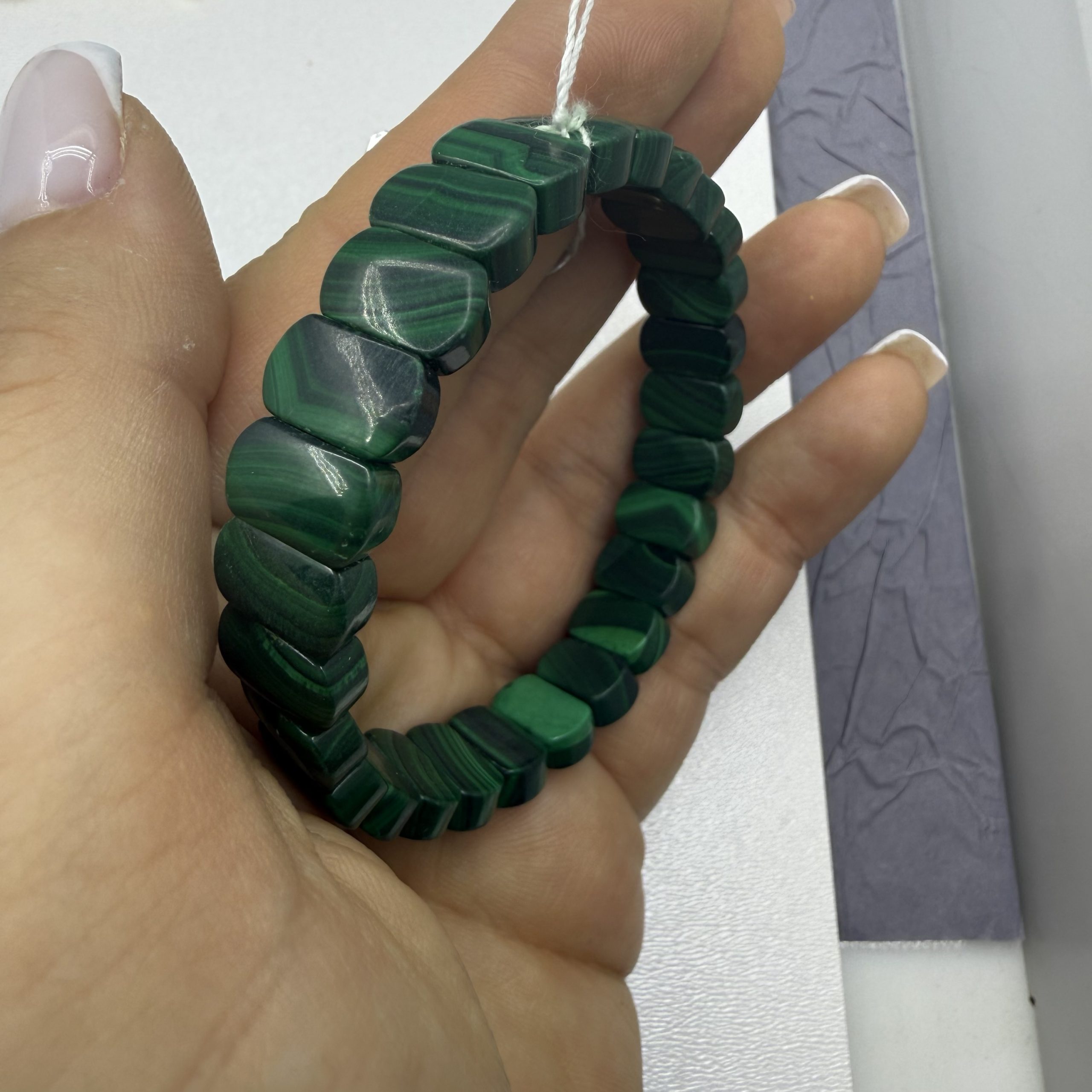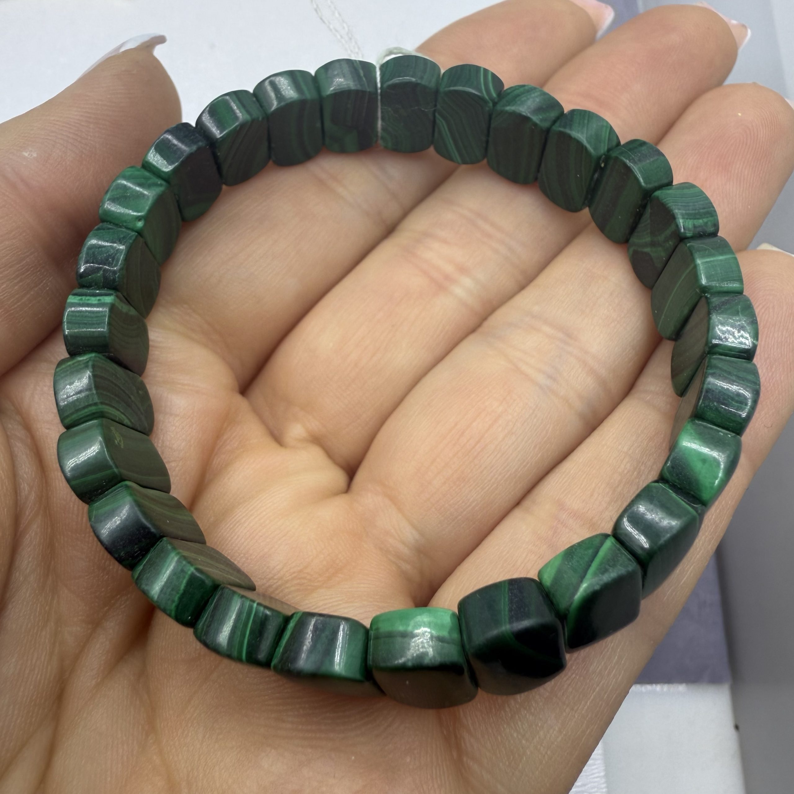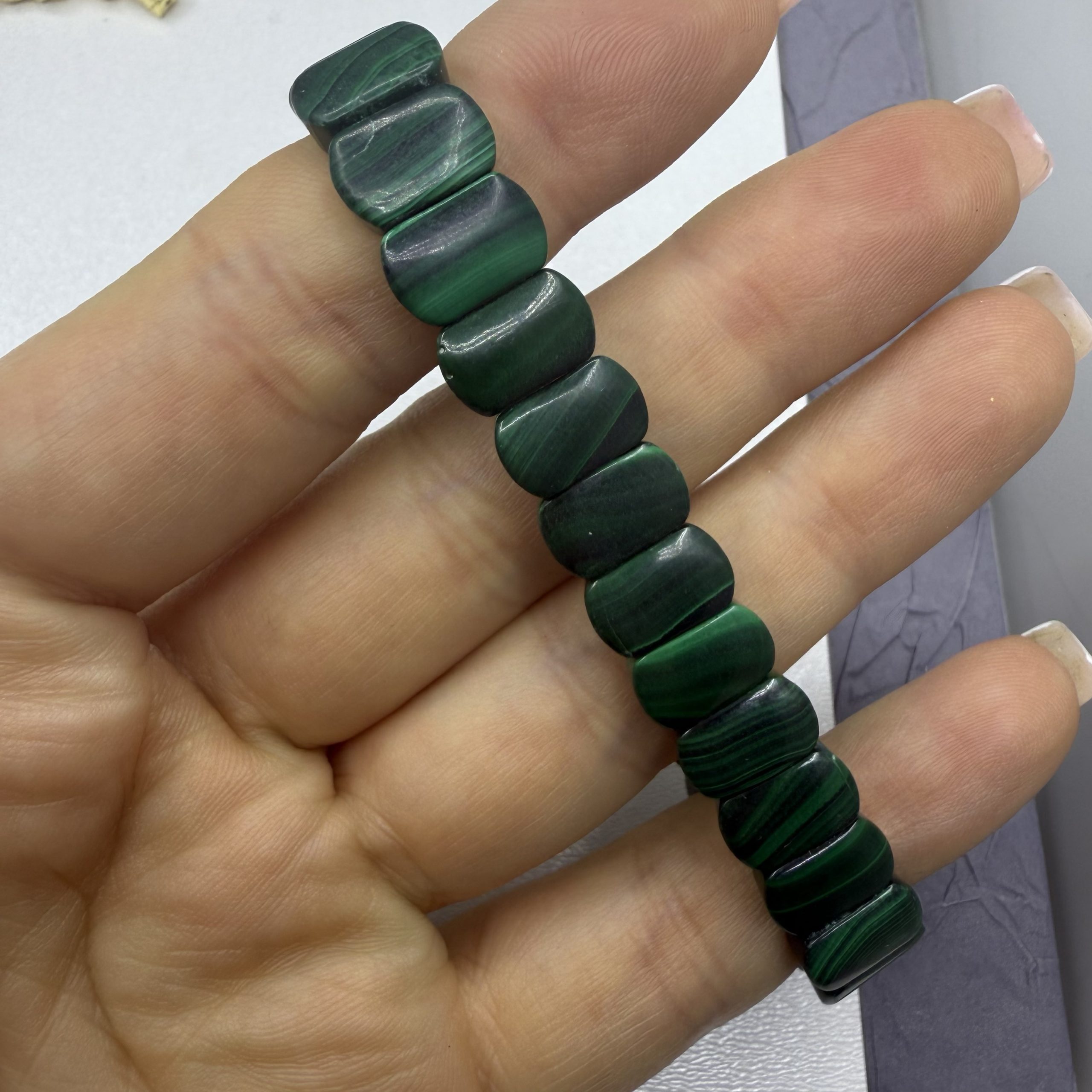 Браслет Малахіт, форма плитка гладка Розмір 16 см розмір, плитка 12/8 мм . Ціна за шт кількість