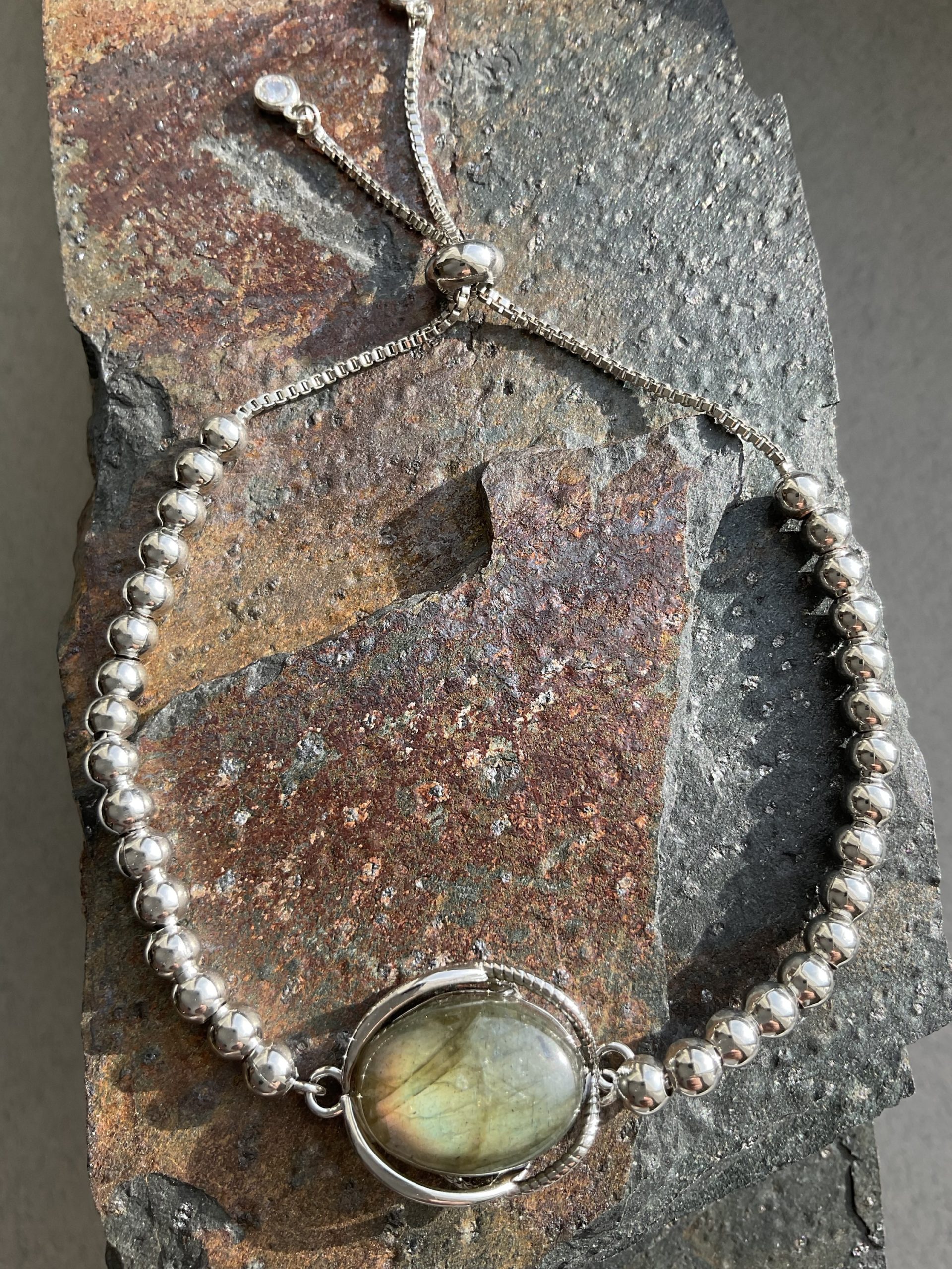 Браслет Металеві намистини з вставкою Лабрадор. Розмір від 16см обхвату. Ціна за шт.