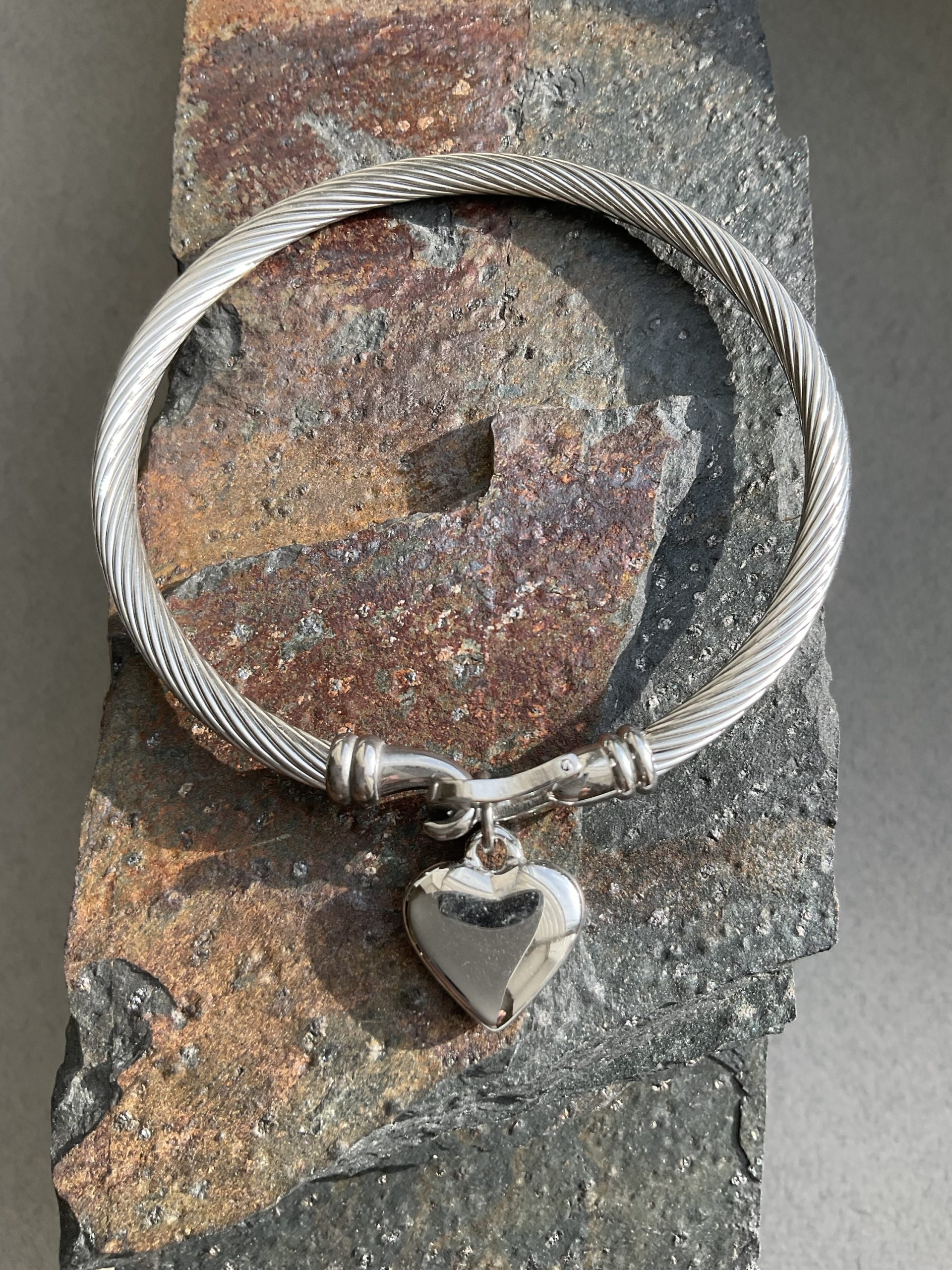 Браслет Металевий з підвіскою сердечко,нержавіюча сталь. Розмір намистини 12мм, розмір 16см обхвату. Ціна за шт.